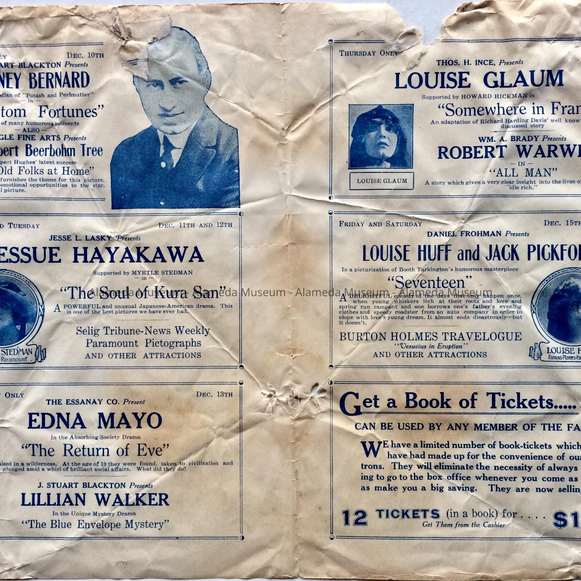 Program coming attractions Alameda Theater in December, c. 1915-1920Entry/Object ID