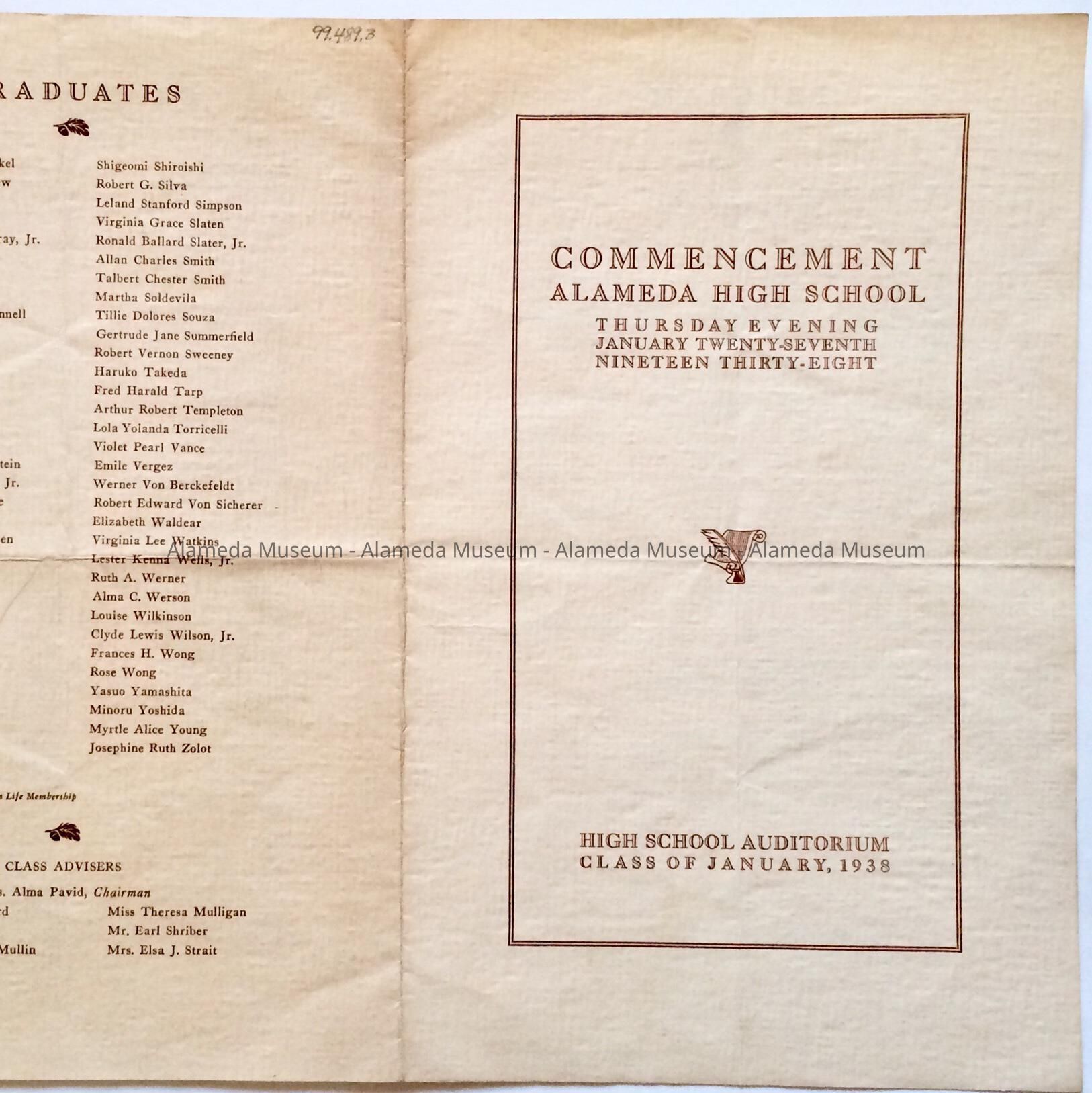 Program Commencement Alameda High School, Class of January 1938Entry/Object ID