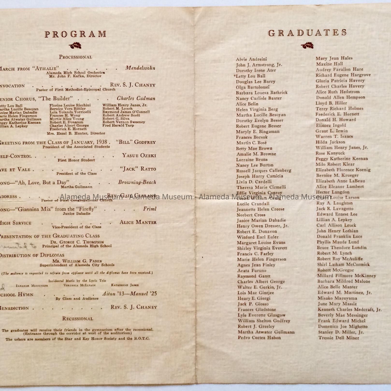 History: Program for Commencement Exercises of Alameda High School, Class of January 1938.