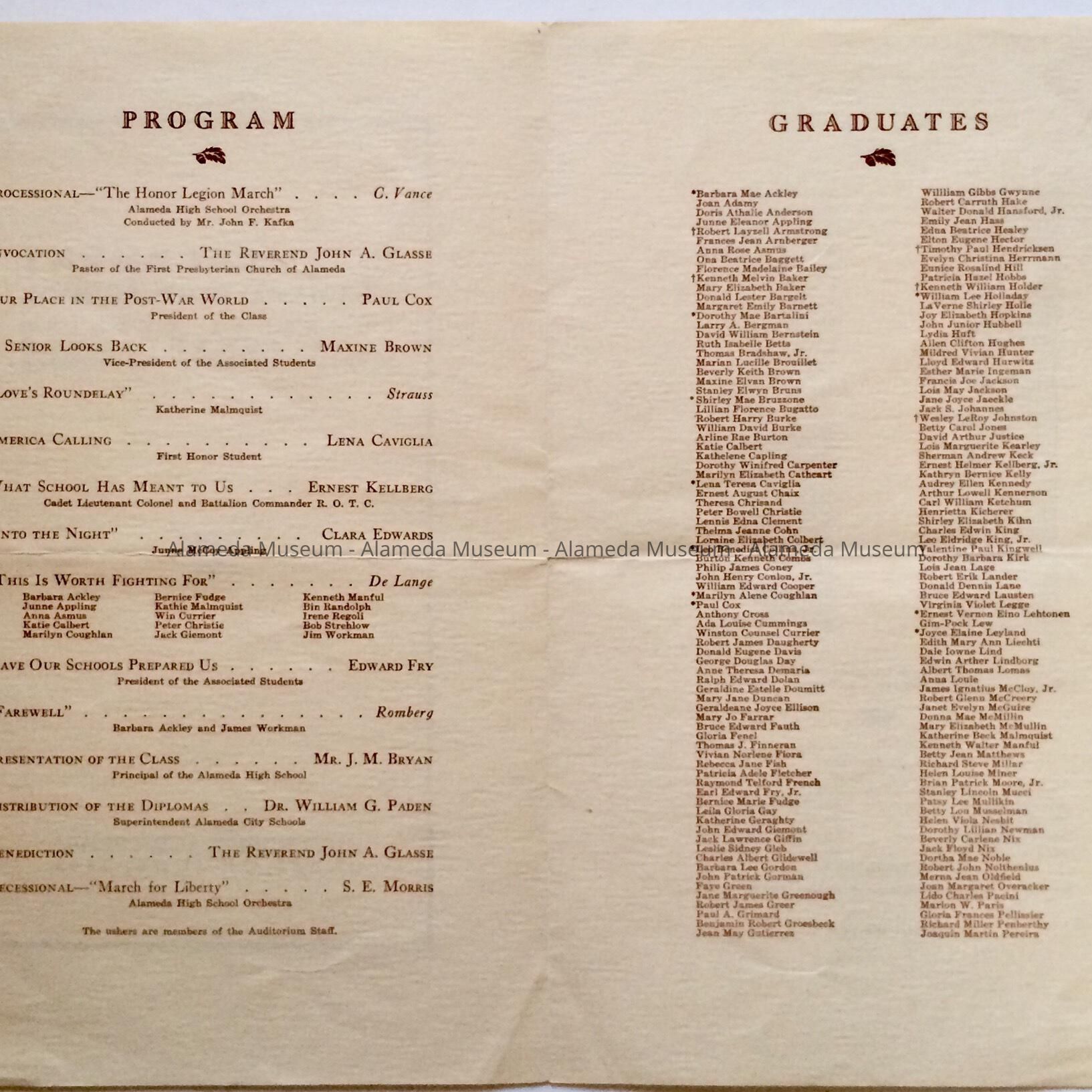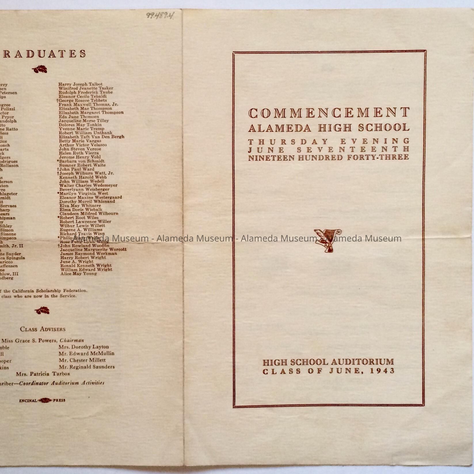 History: Program for Commencement Exercises, Alameda High School, Class of June, 1943.
