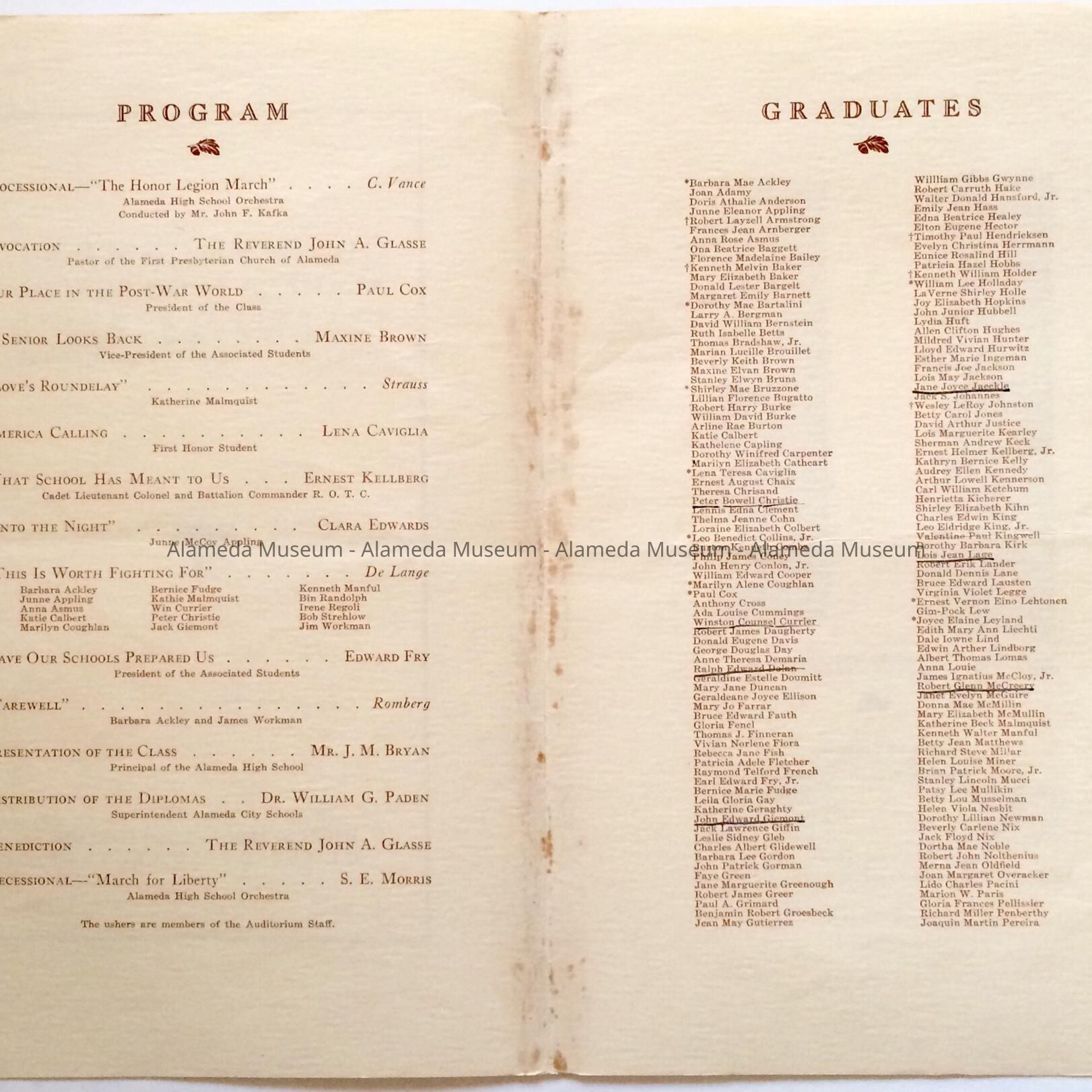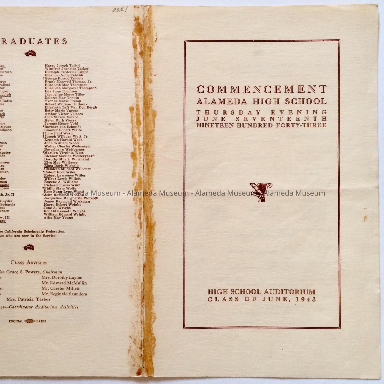 Program Commencement Alameda High School Class of June, 1943Entry/Object ID