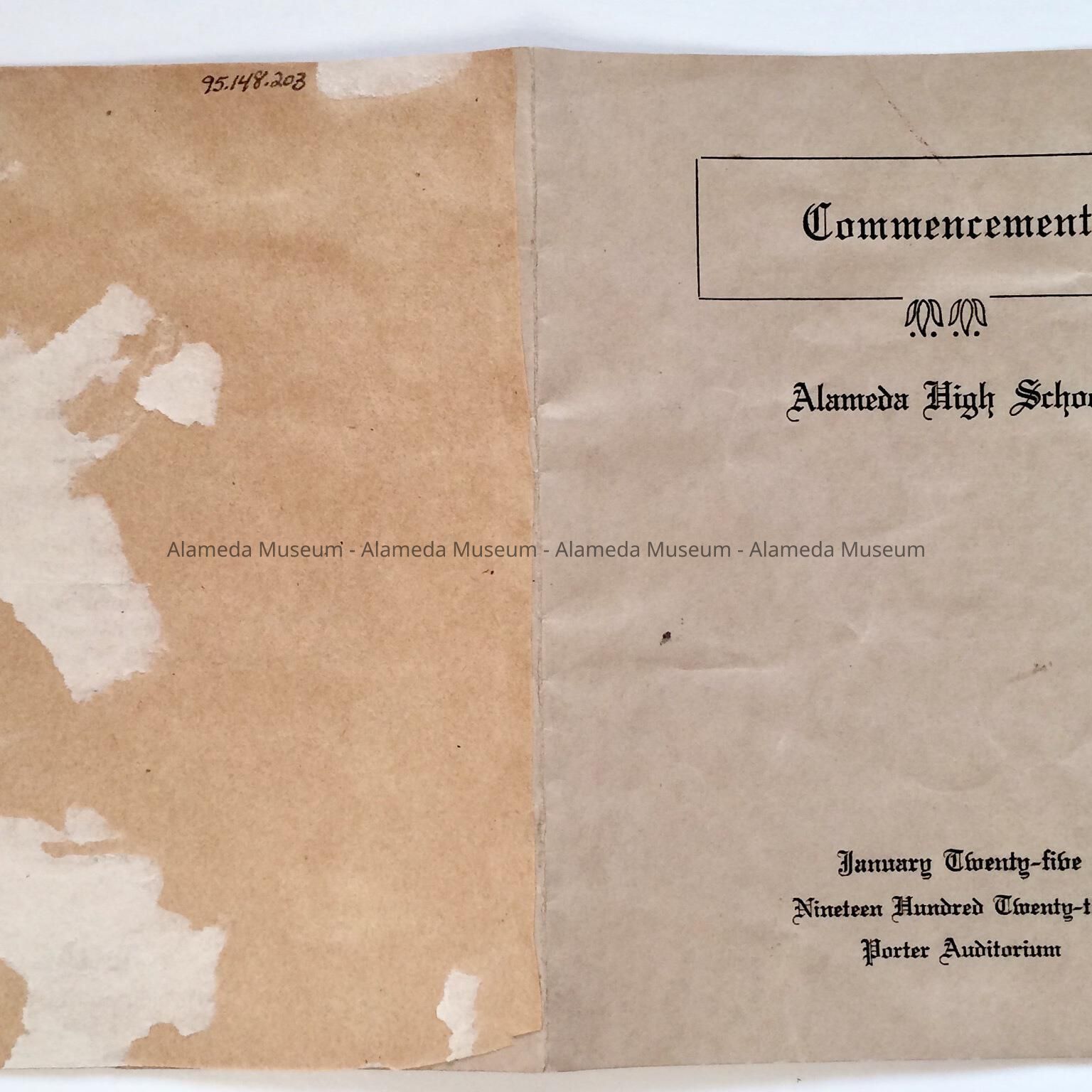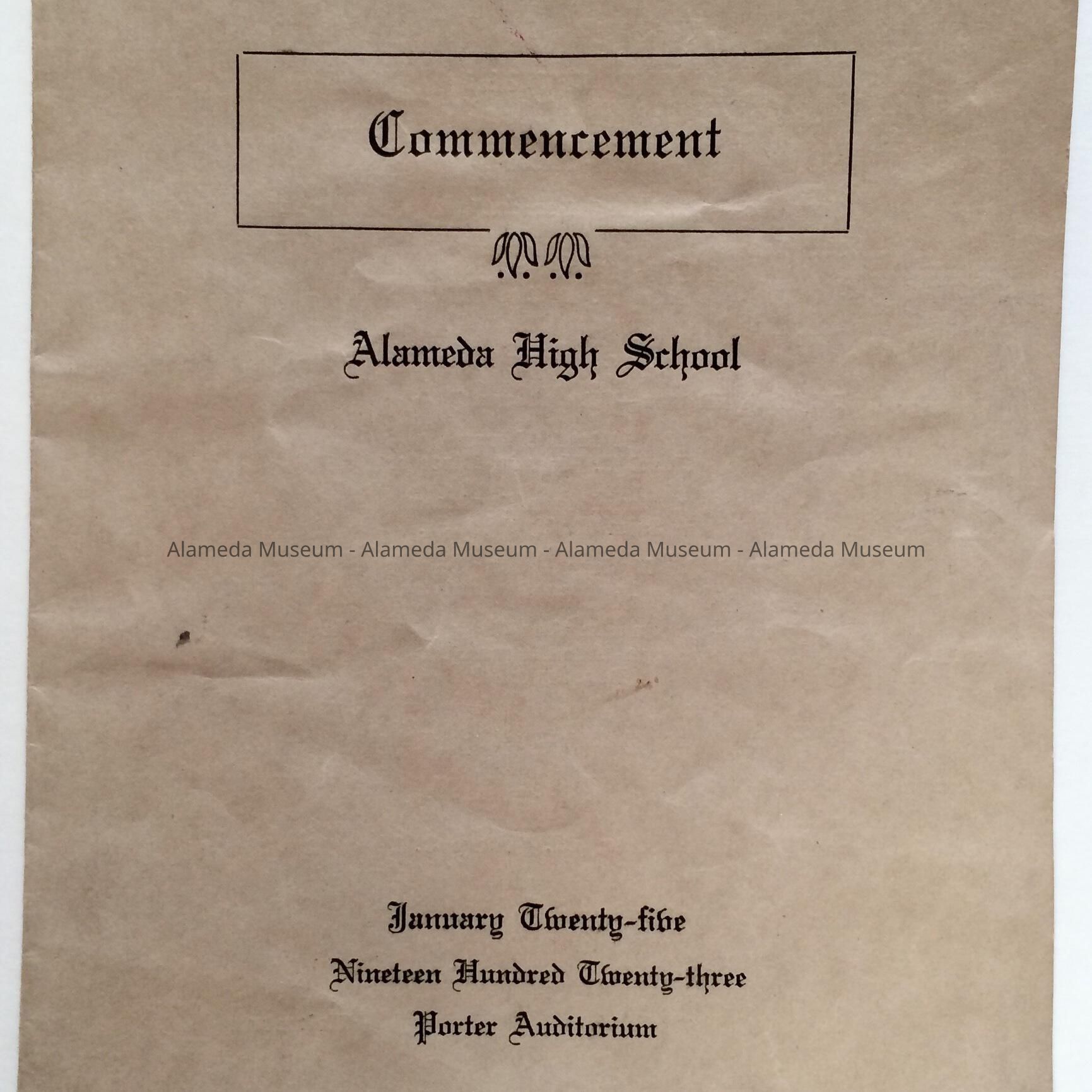 PROGRAM, COMMENCEMENT EXERCISES, ALAMEDA HIGH SCHOOL, JANUARY 25, 1923, HELD AT PORTER SCHOOL AUDITORIUM. THE DONOR WAS A MEMBER OF THE GRADUATING CLASS.