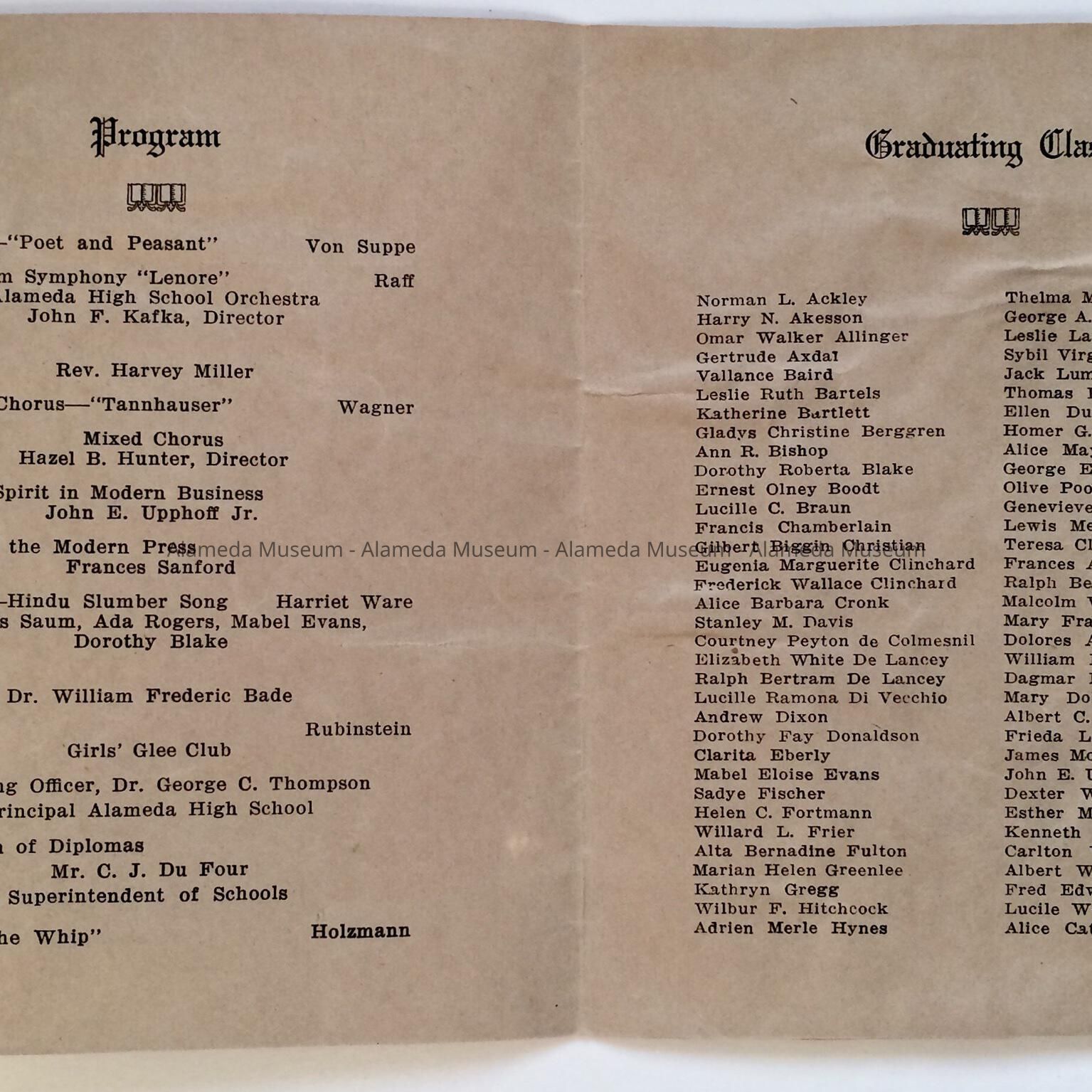 Program commencement exercises Alameda High School, 1923Entry/Object ID