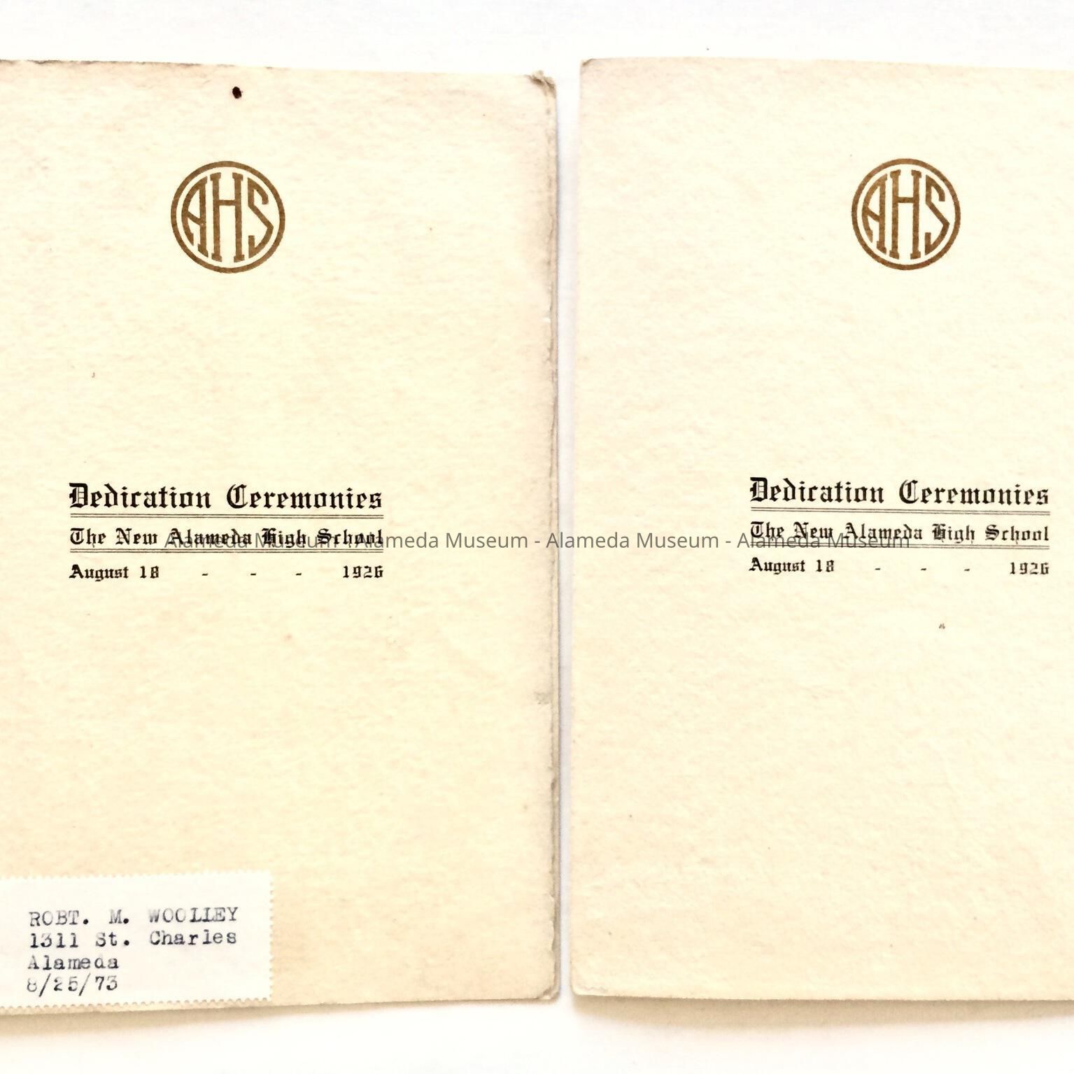 Program Dedication Ceremonies Alameda High School, August 18, 1926Entry/Object ID