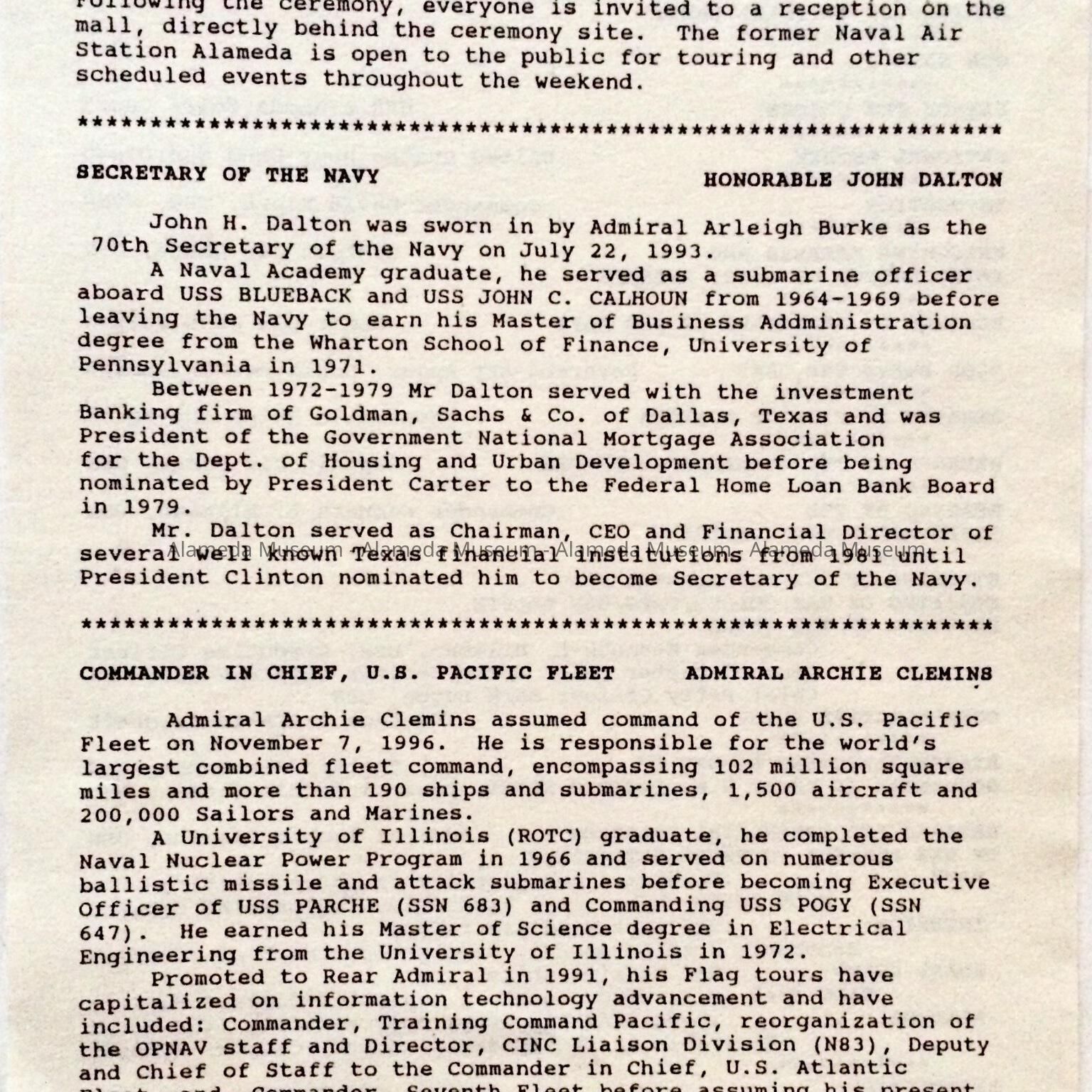 Program disestablishment ceremonies for Naval Air Station, Alameda, 1997Entry/Object ID