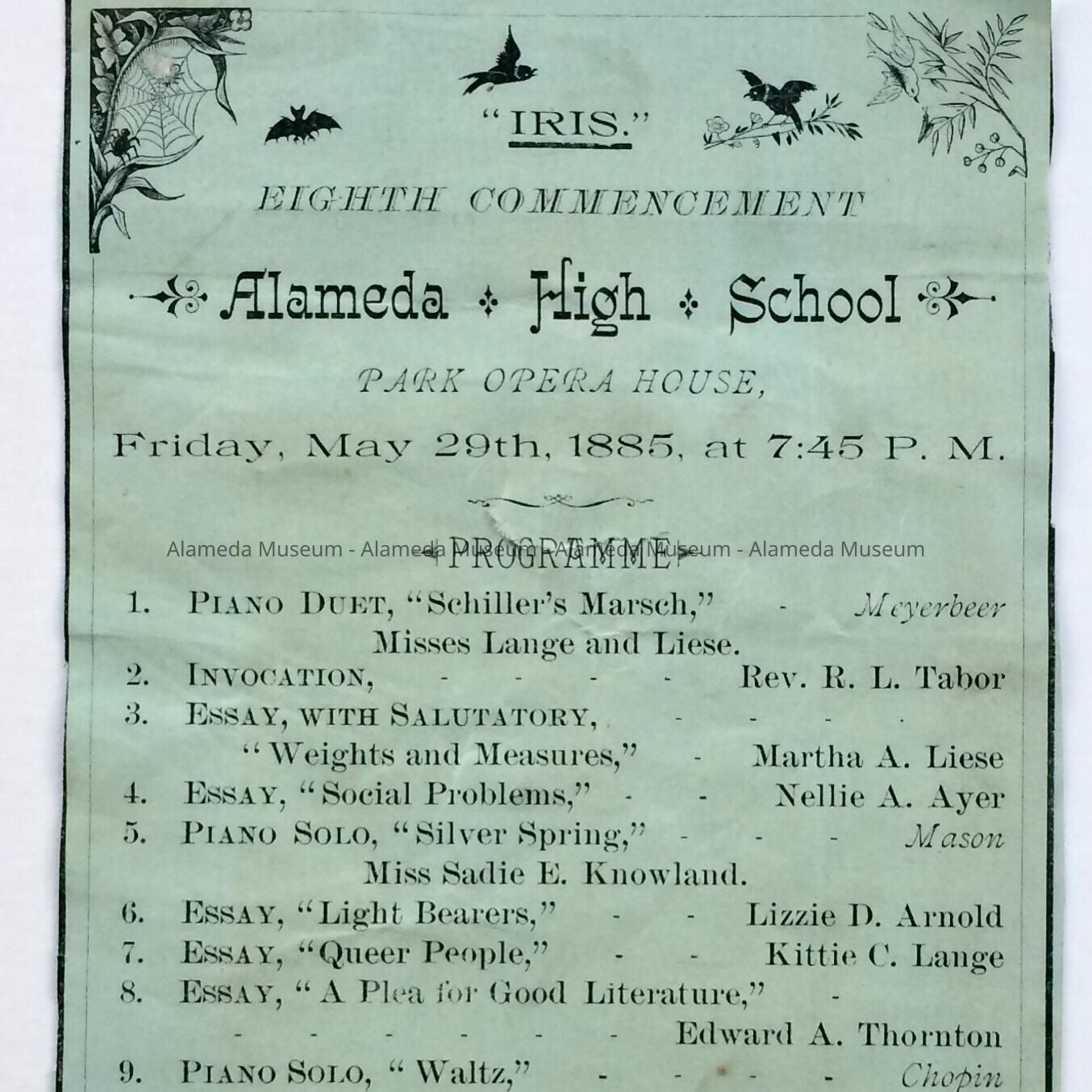 Program eighth commencement Alameda High School, 1885Entry/Object ID