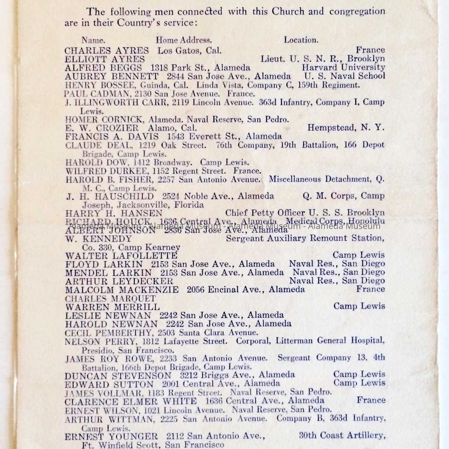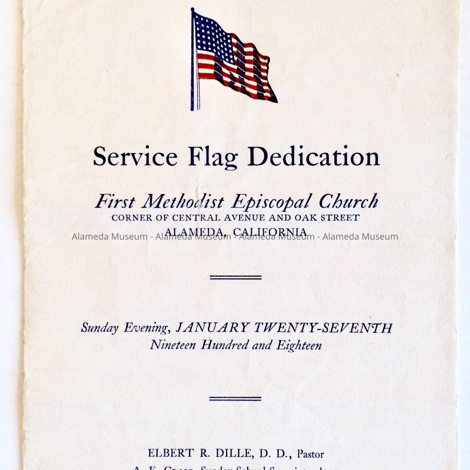 Program, flag dedication service, First Methodist Episcopal Church, corner of Central Avenue & Oak Street, Alameda, January 27, 1918.