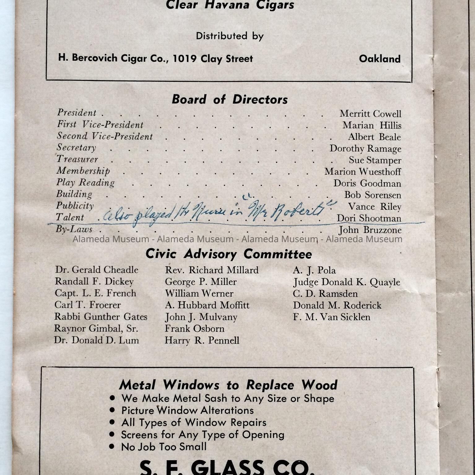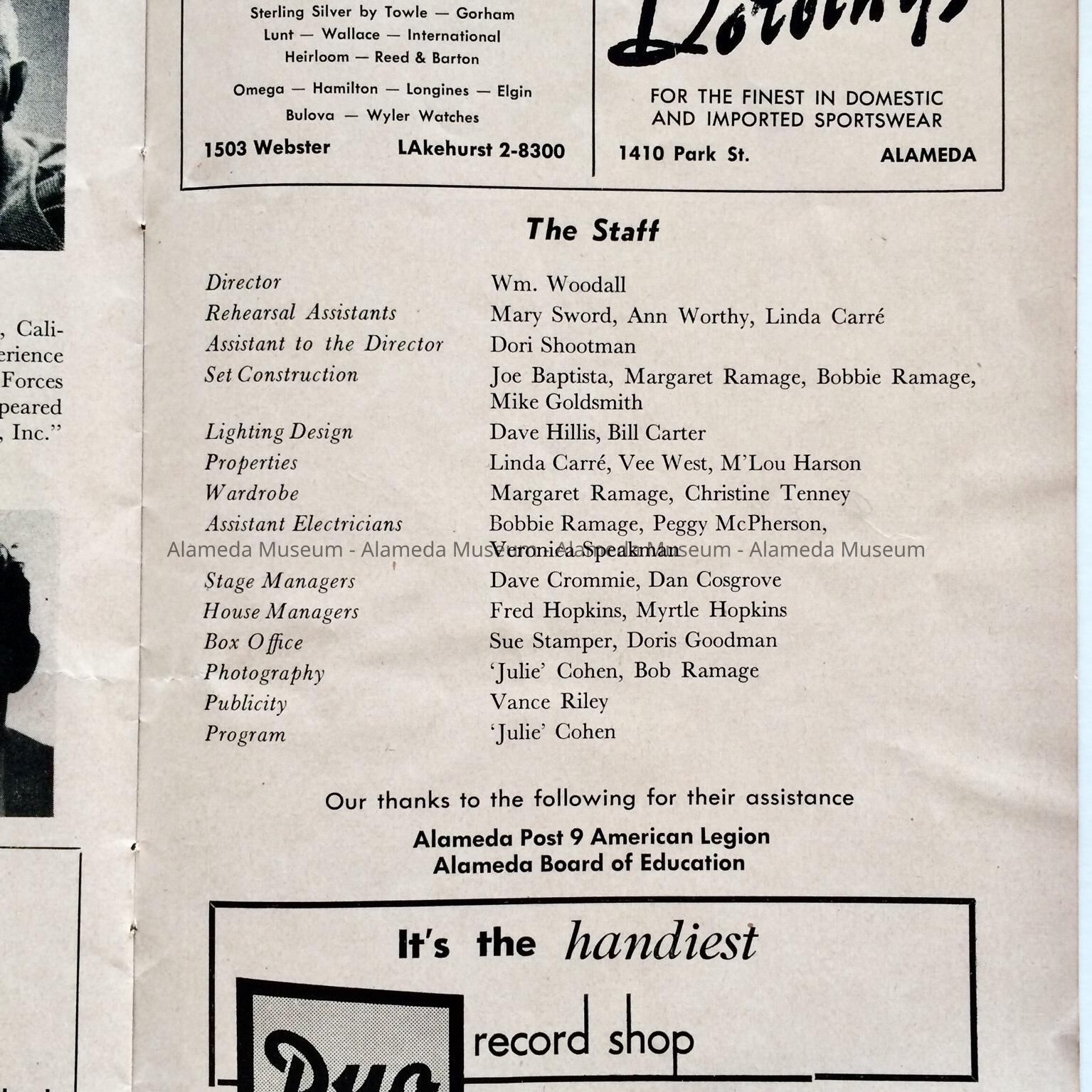 Program for a play at the Alameda little Theater, 1956Entry/Object ID