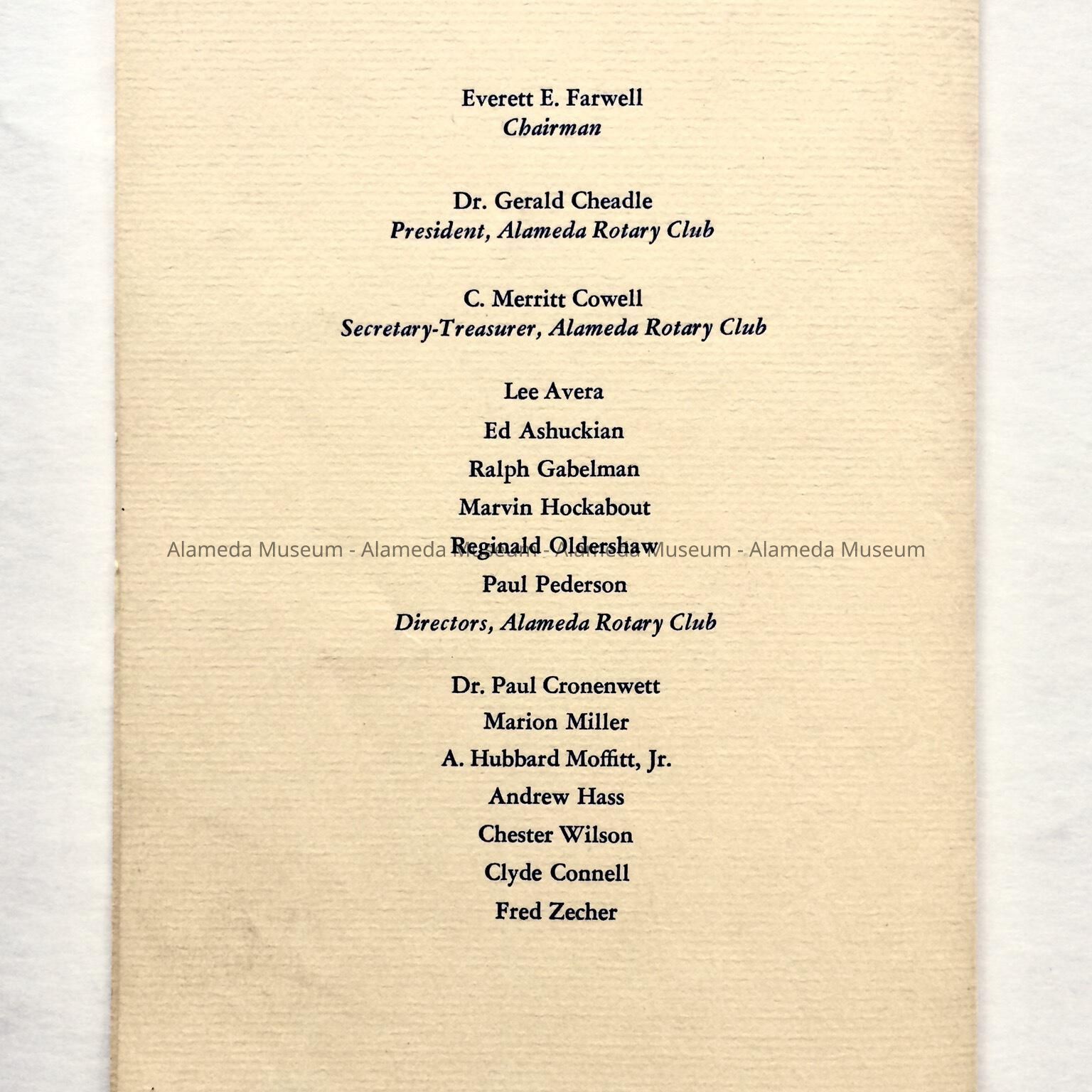 SUBJECT CATEGORY : DOCTORS, CITIZENS OF ALAMEDA, ROTARY CLUB