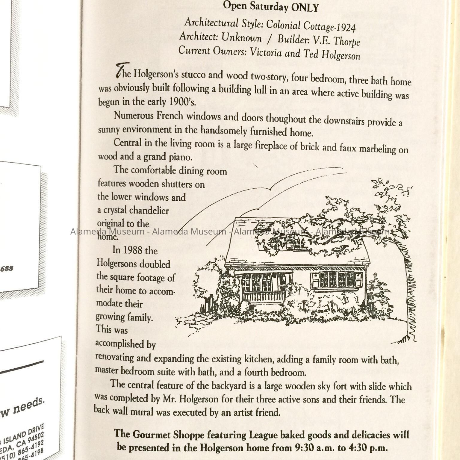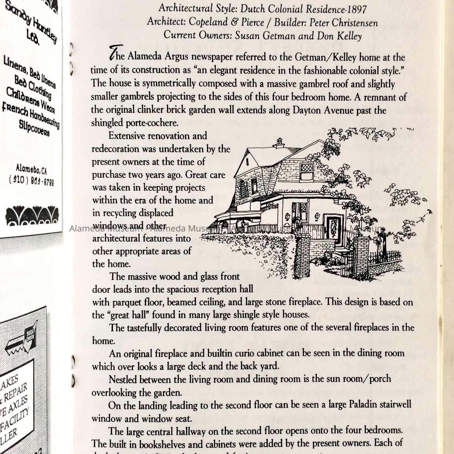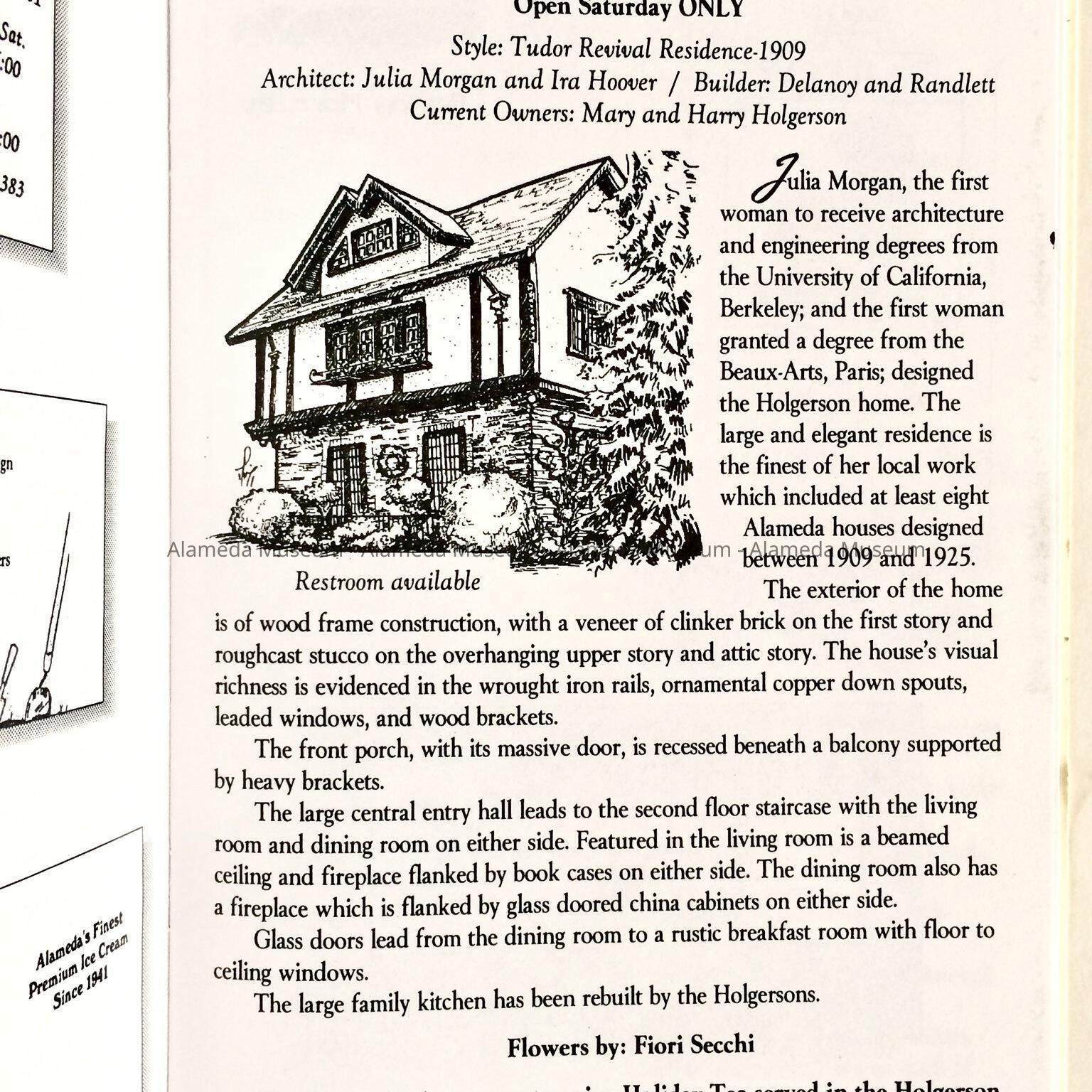 HISTORY OF OBJECT: PROGRAM FOR THE ALAMEDA FAMILY SERVICES LEAGUE HOLIDAY HOME TOUR OF 1997. THE BOOKLET DESCRIBES THE HOUSES AS WELL AS INFORMATION CONCERNING HISTORY OF EACH, ETC.