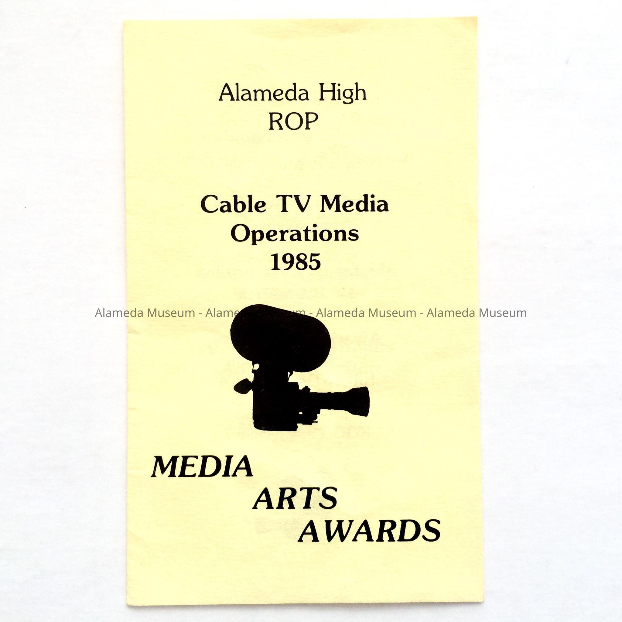 PROGRAM FOR AWARDS PRESENTATIONS, ALAMEDA HIGH SCHOOL, FOR CABLE TELEVISION MEDIA OPERATIONS. 1985.