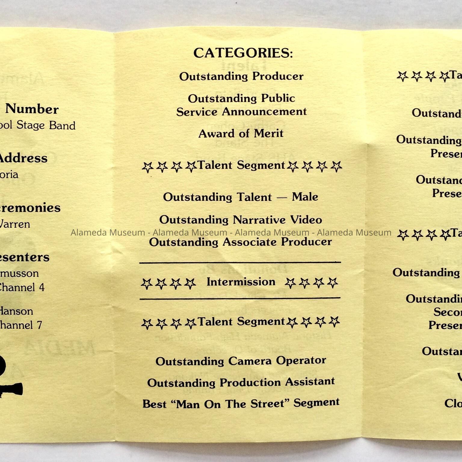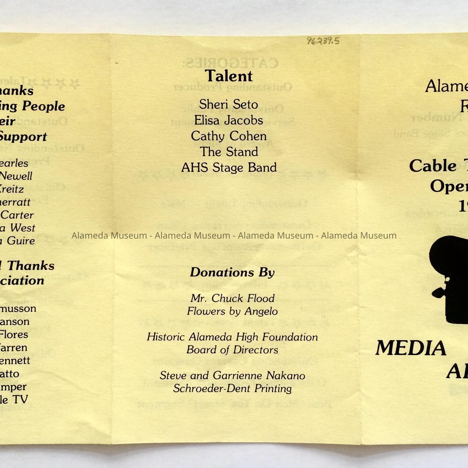 Program for awards presentations, Alameda High School, for cable TV Media Arts, 1985Entry/Object ID