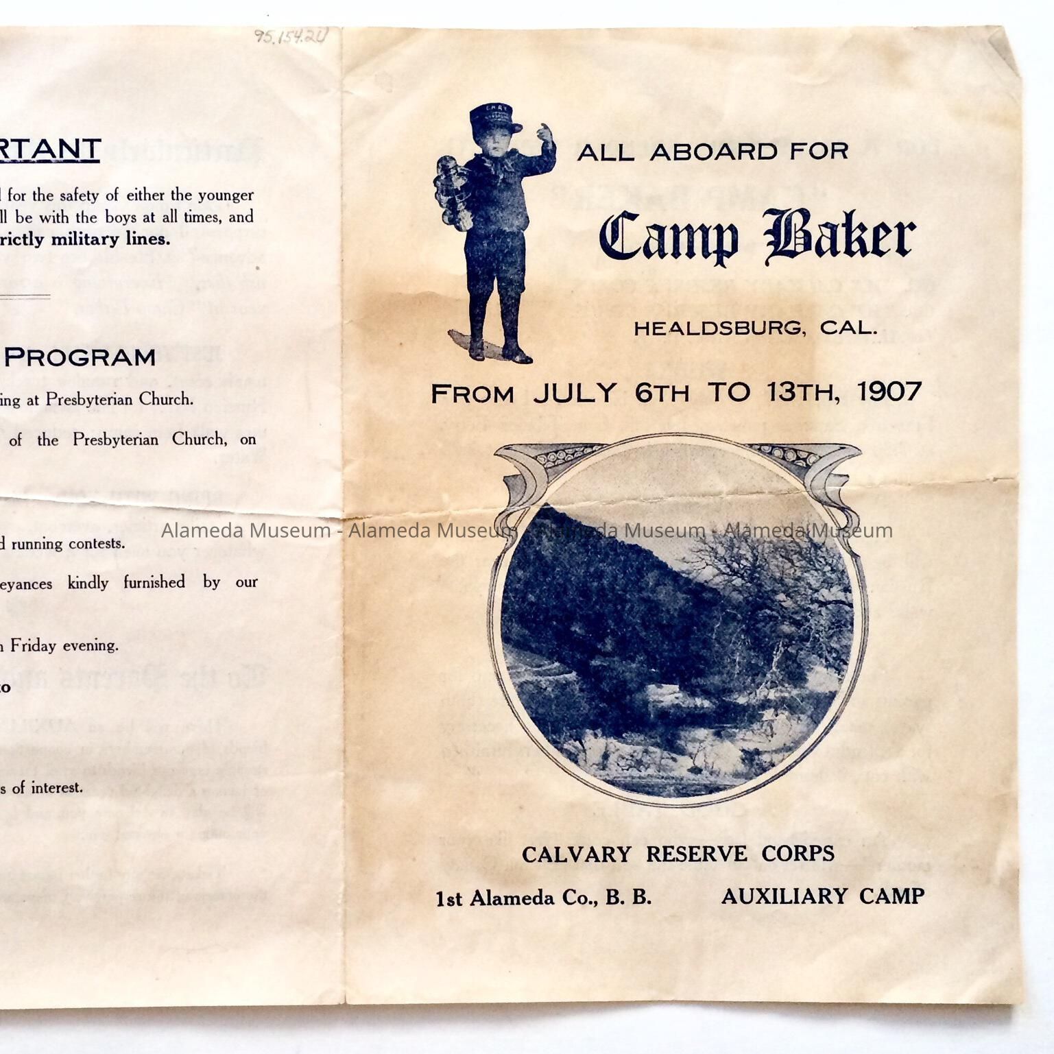 PROGRAM FOR A CAMP RETREAT AT HEALDSBURG, CALIFORNIA, JULY 6-13, 1907. CAVALRY RESERVE CORPS, COMPANY "BB," PRESBYTERIAN CHURCH, ALAMEDA, CA.