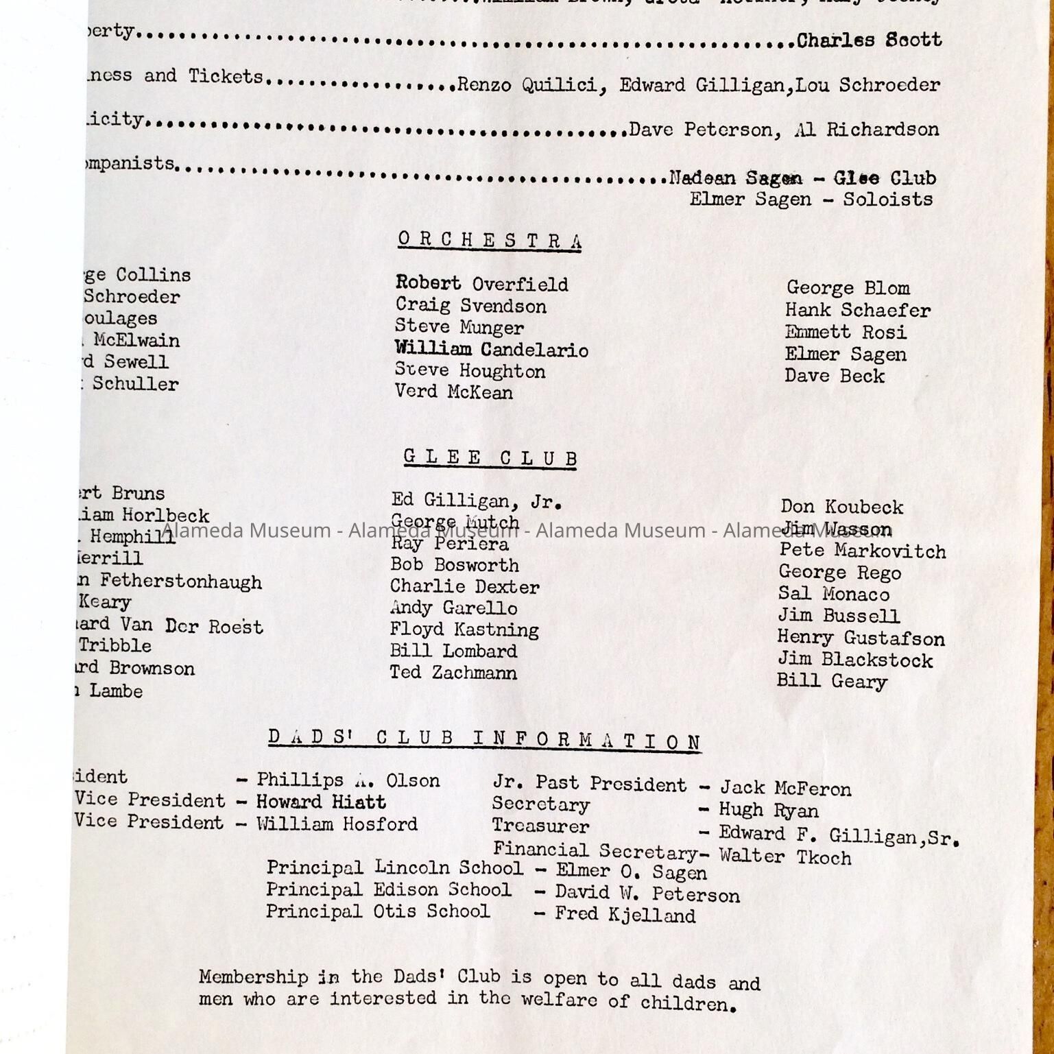 Subject Category: Schools; Public - Lincoln, Edison, Otis; Fraternal and Social Groups - Dads Club