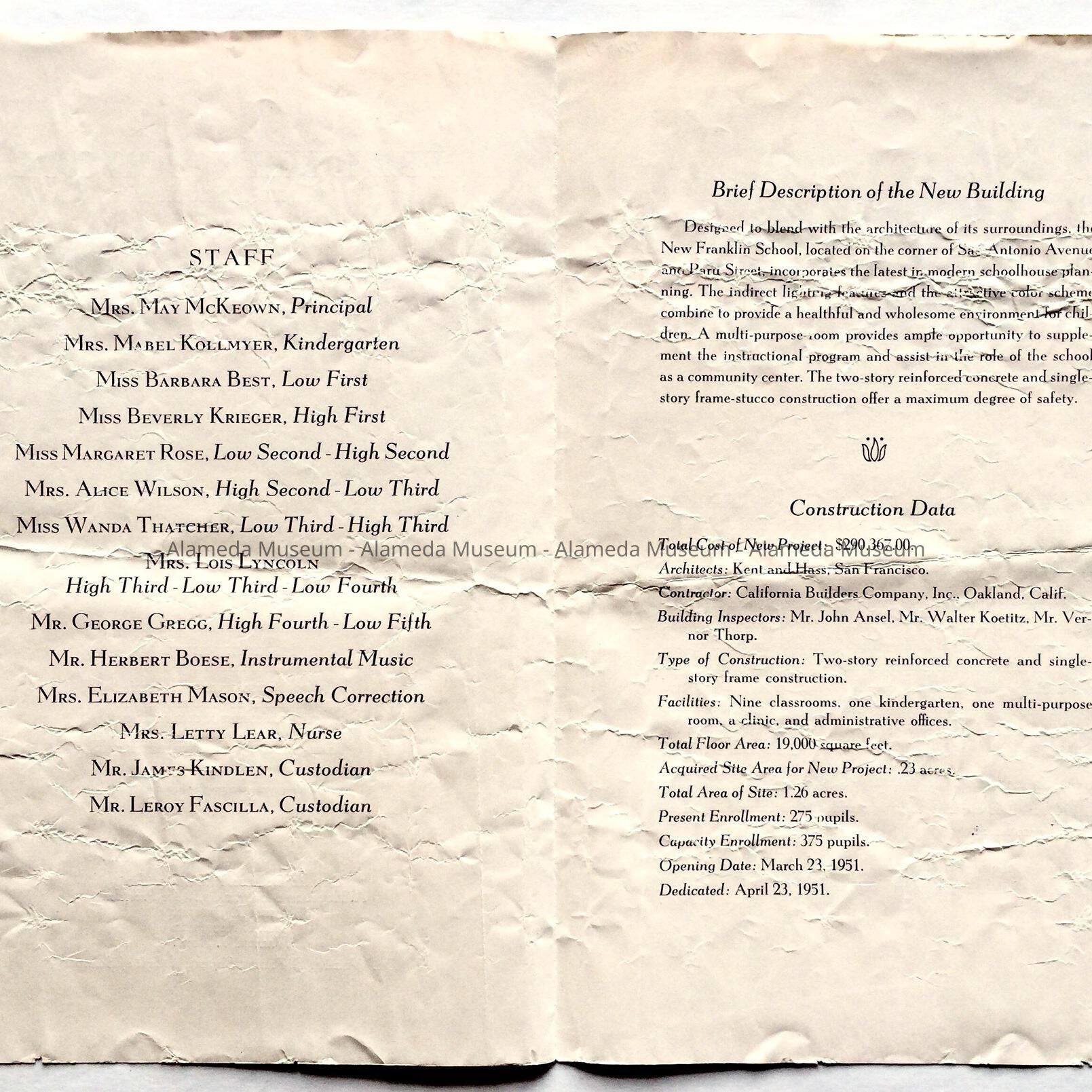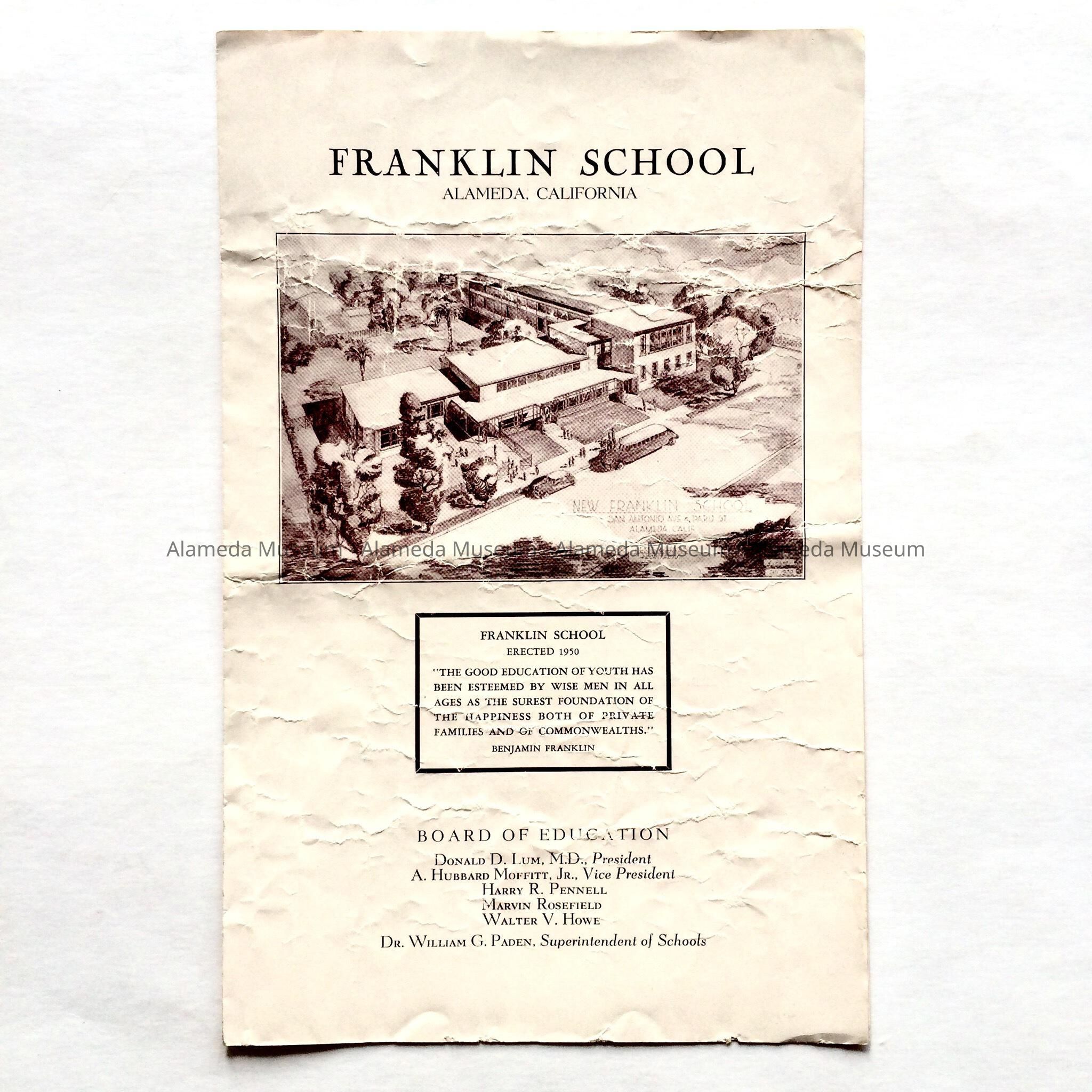 Program for dedication Franklin School, 1951Entry/Object ID