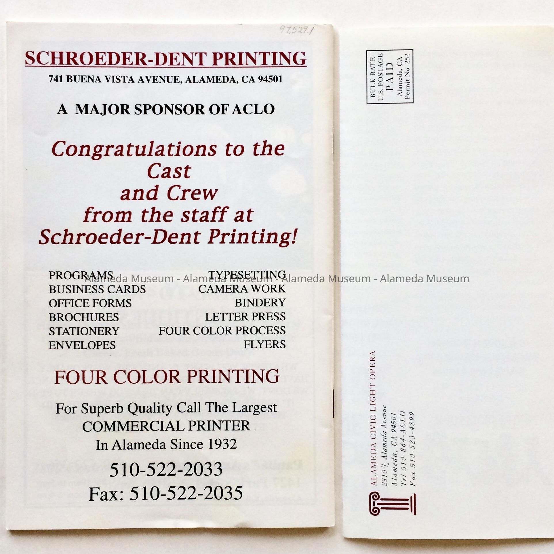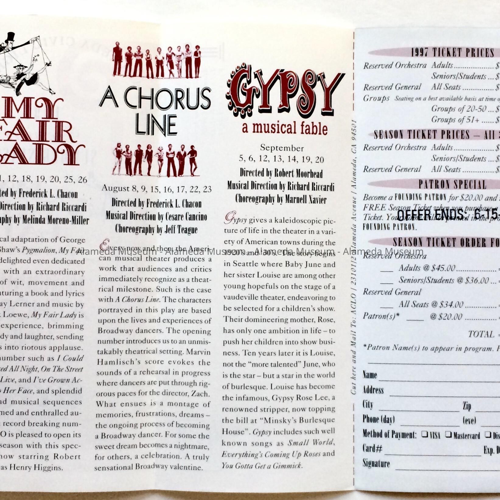 Program for My Fair Lady, first production by the Alameda Civic Light Opera, 1997Entry/Object ID