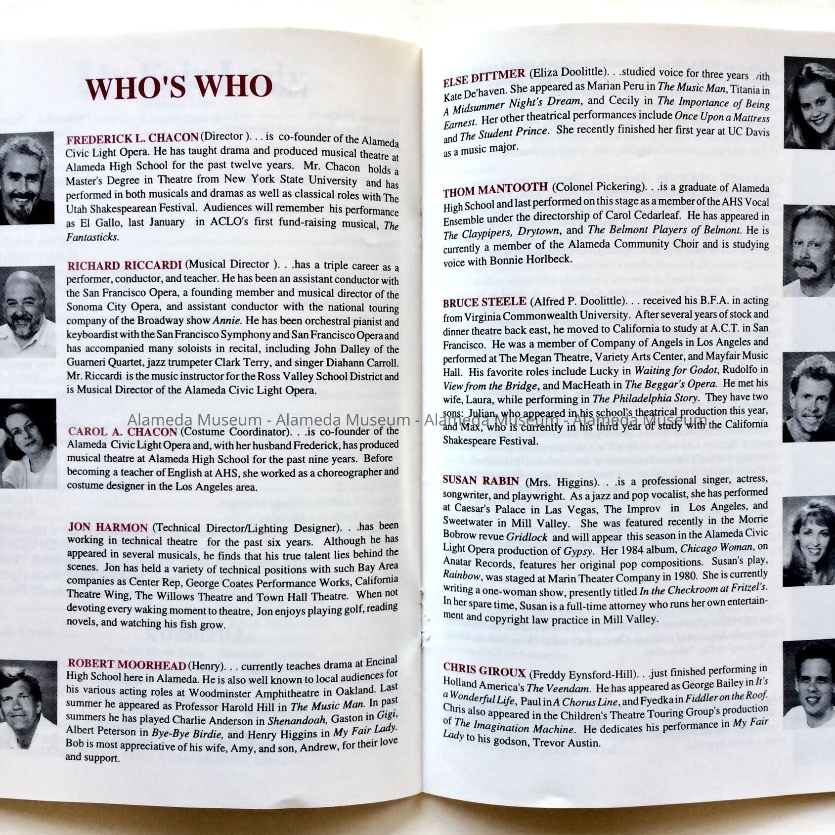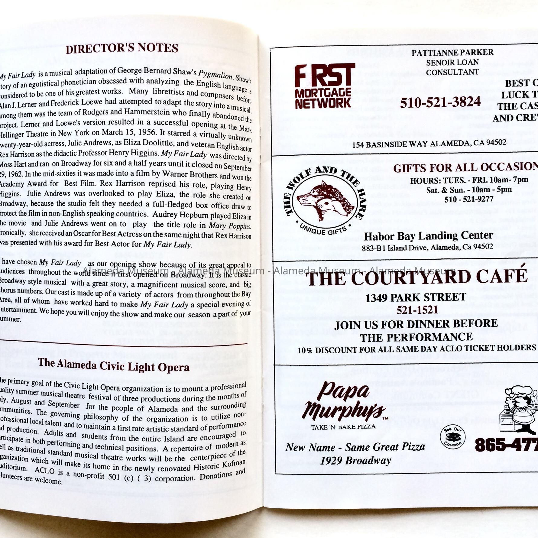 PROGRAM FOR THE MUSICAL, "MY FAIR LADY," FIRST PRODUCTION BY THE ALAMEDA CIVIC LIGHT OPERA, JULY 11-26, 1997.