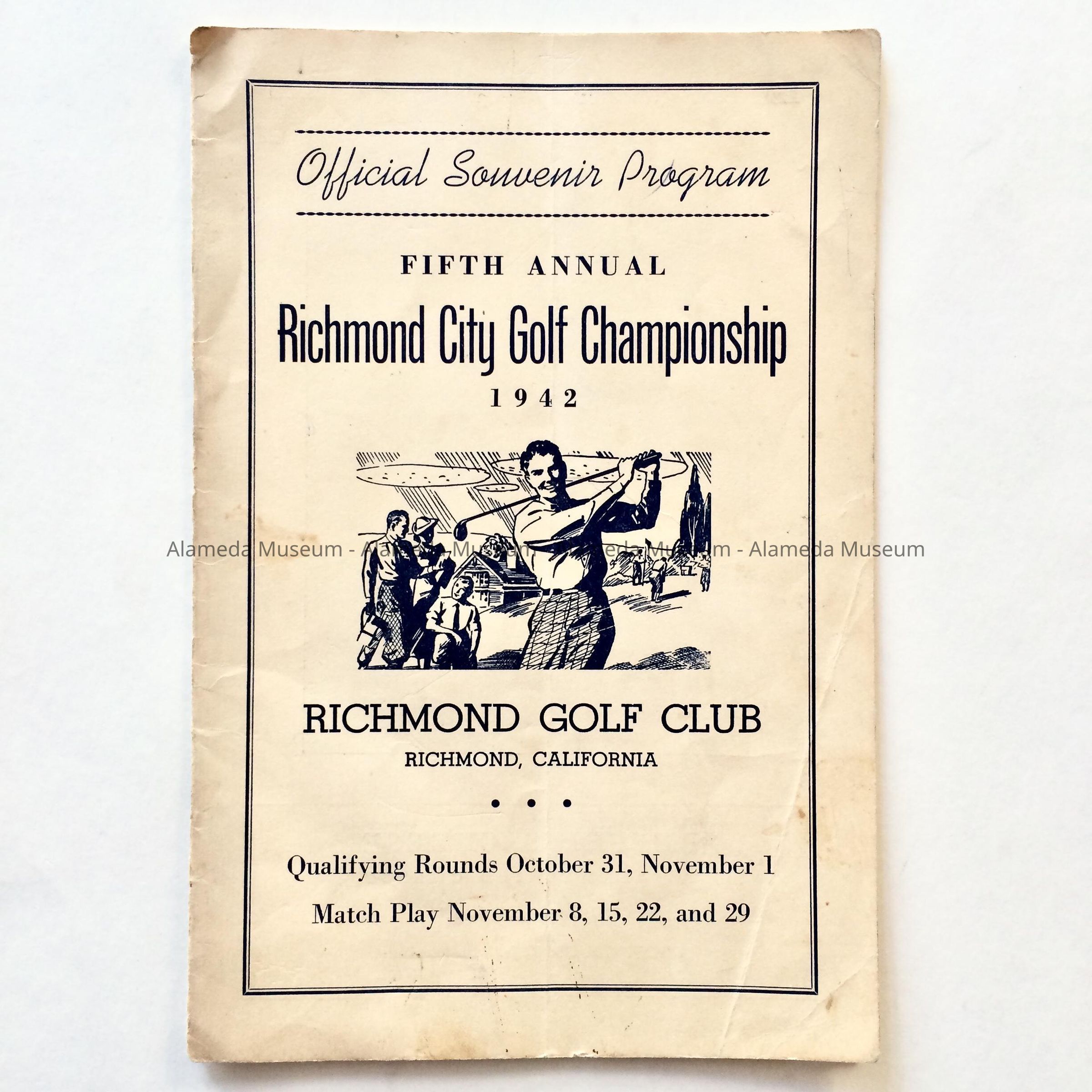A PROGRAM FOR THE RICHMOND CITY GOLF CHAMPIONSHIP, RICHMOND, CALIFORNIA, 1942. IT IS ILLUSTRATED WITH A PHOTOGRAPH OF EDDIE FRY, SON OF THE LATE EARL FRY. THE PROGRAM PRESENTS STATISTICS CONCERNING EDDIE'S GOLF GAME IN RICHMOND IN 1941.
