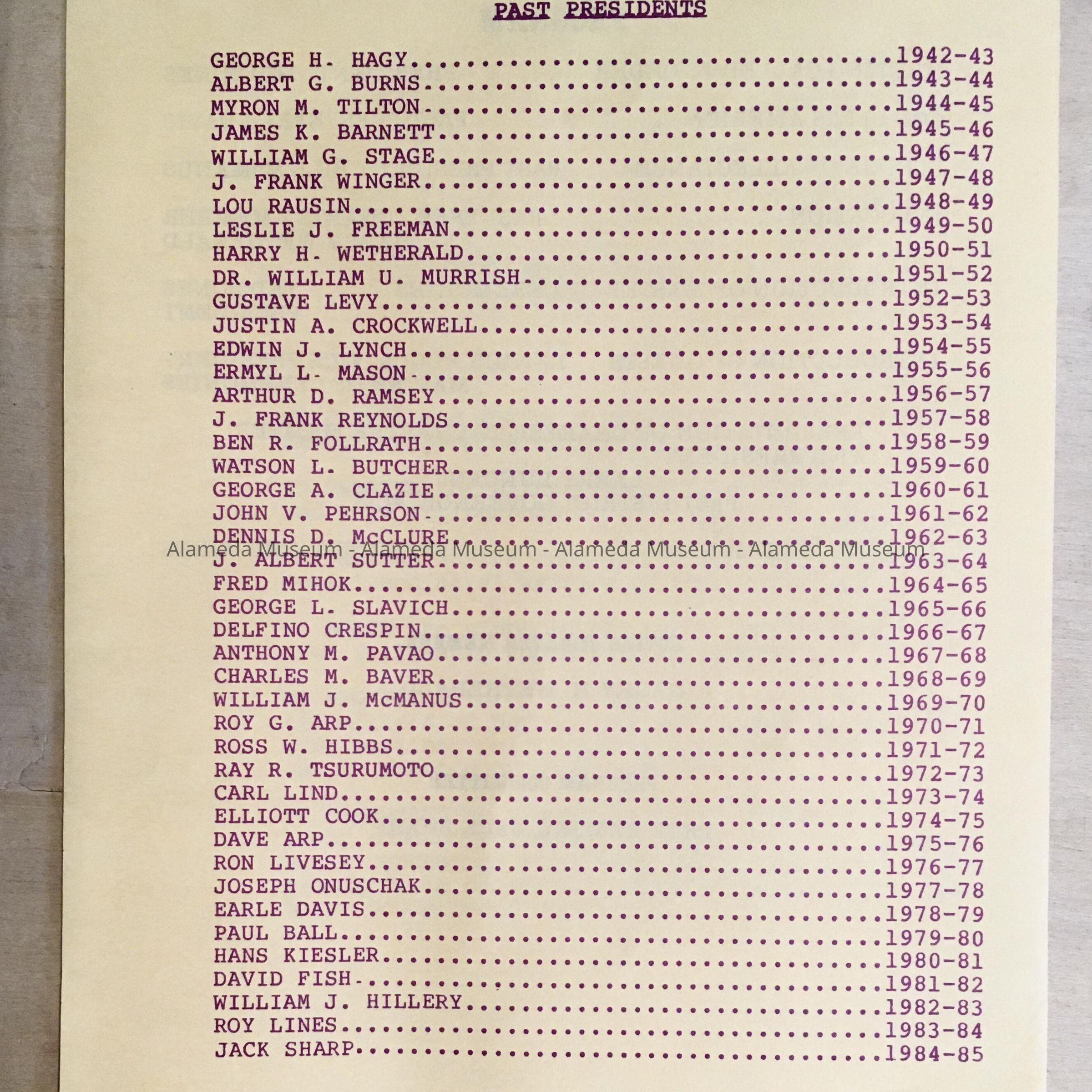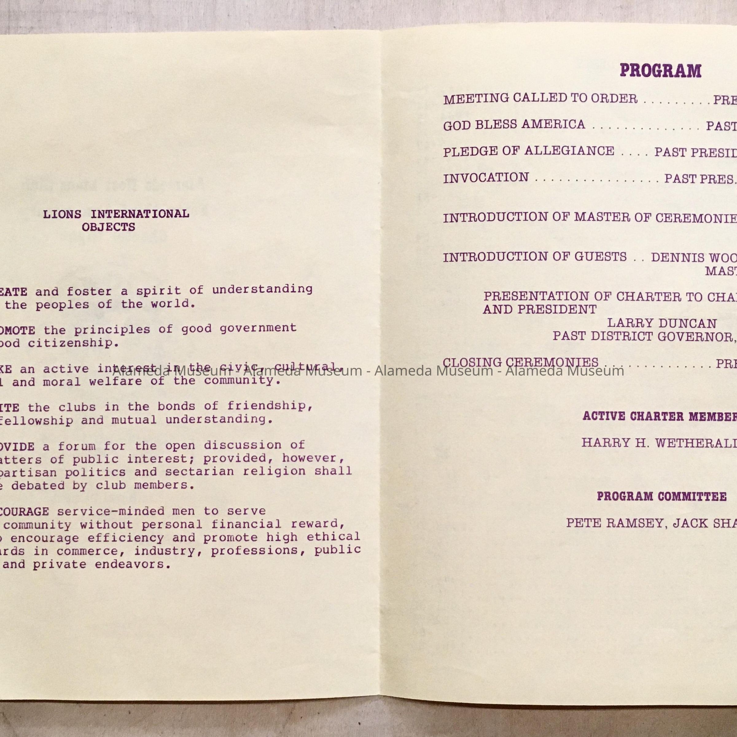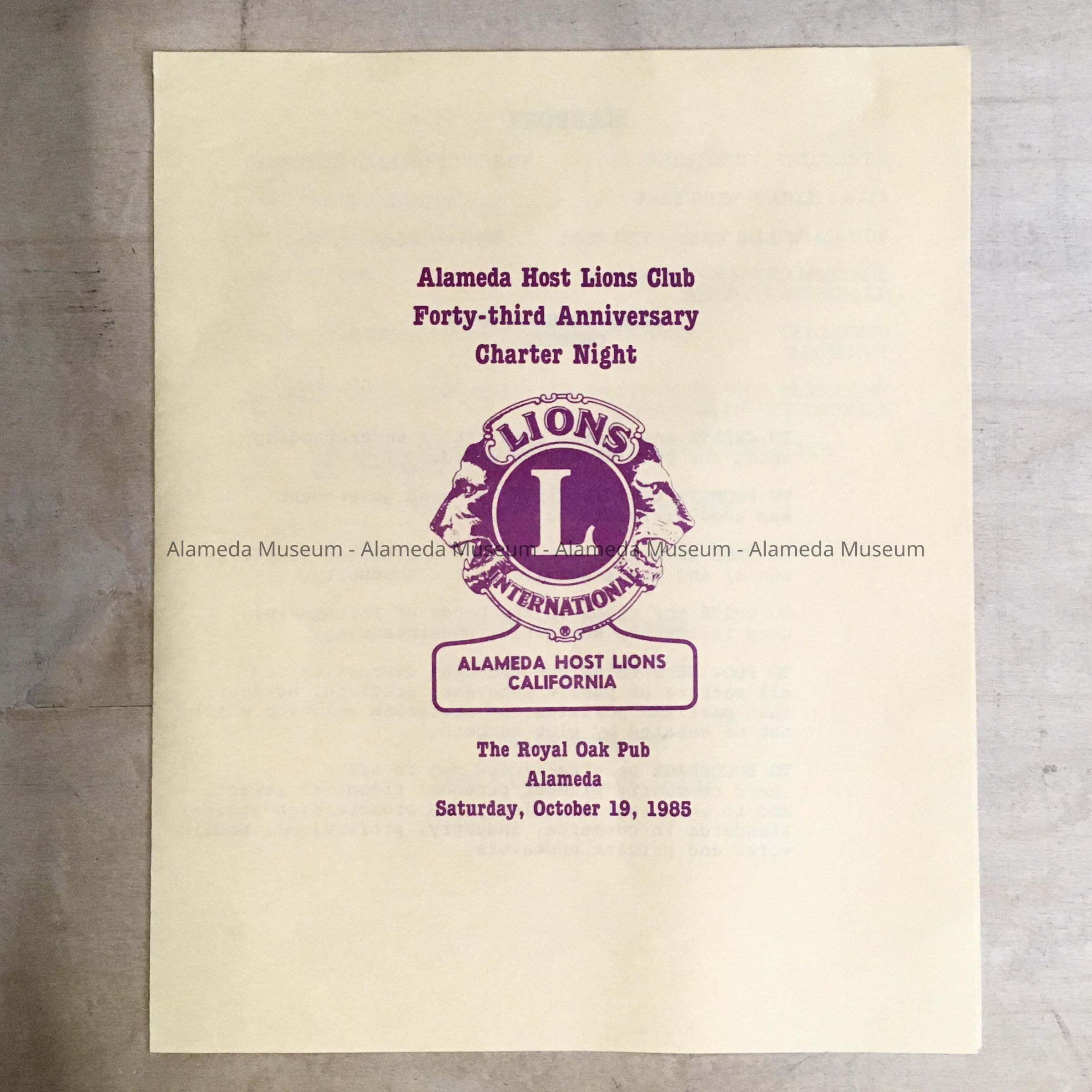 History of Object: Program for the 43rd anniversary charter night Alameda Lions Club.
