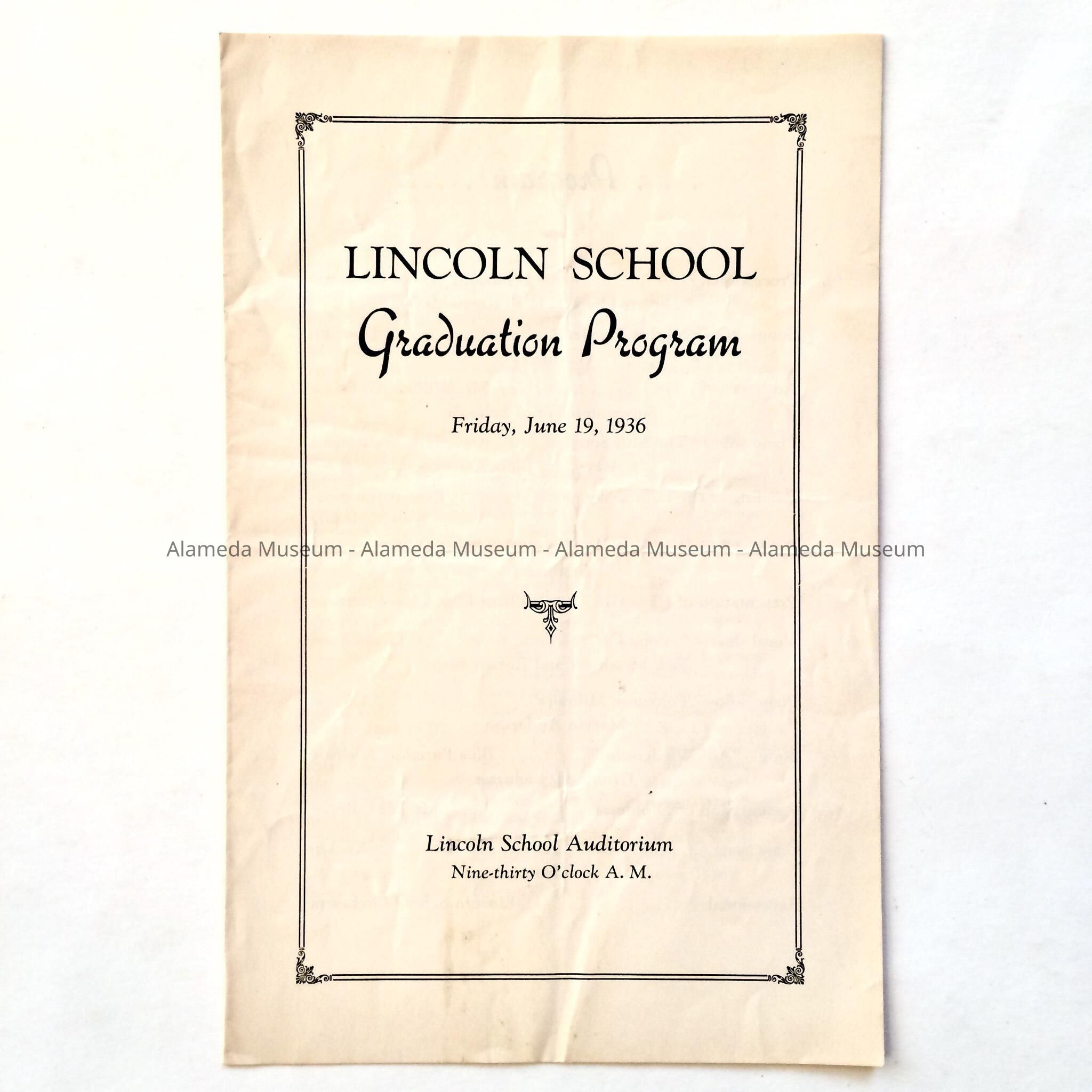 PROGRAM FOR THE GRADUATION CEREMONY, "LINCOLN SCHOOL, JUNE 19, 1926."