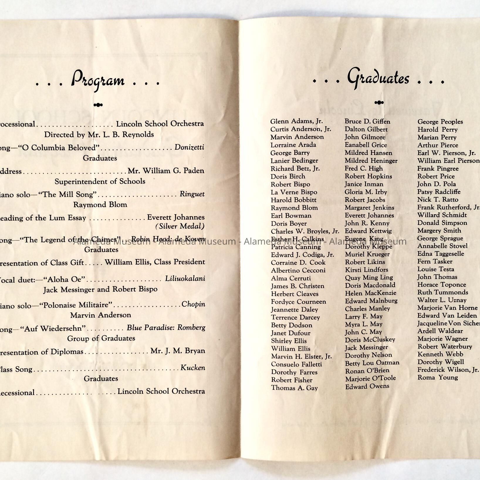 Program Graduation Ceremony, Lincoln School, June 1926Entry/Object ID