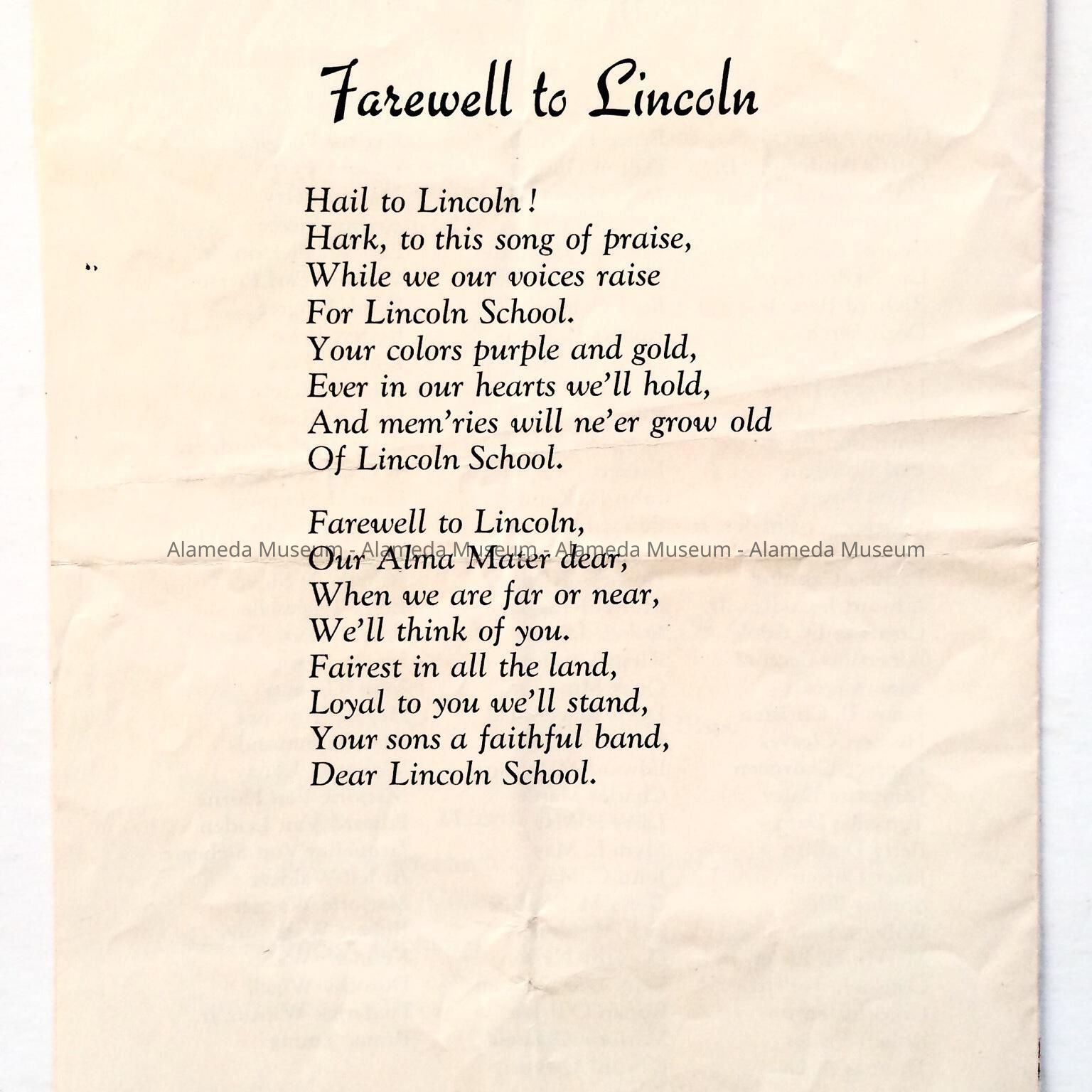 TWO-PAGE PROGRAM, WITH BOLD-PRINTED CAPTION ON COVER, "LINCOLN SCHOOL."