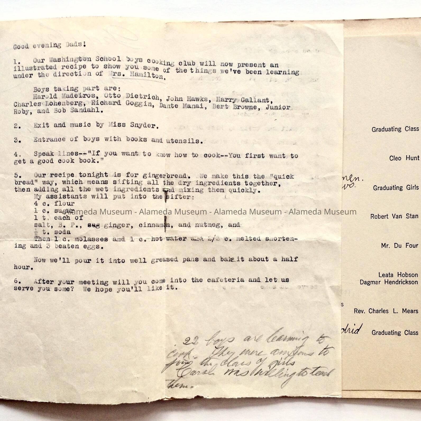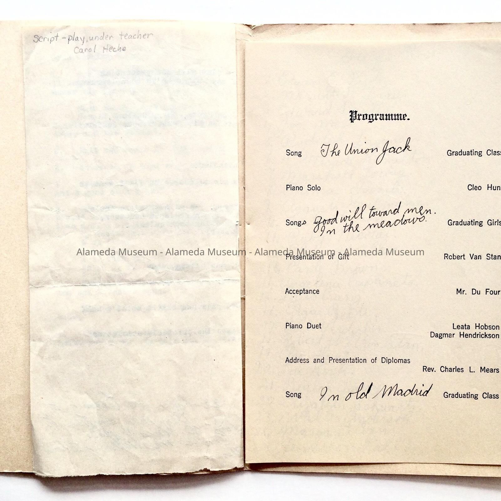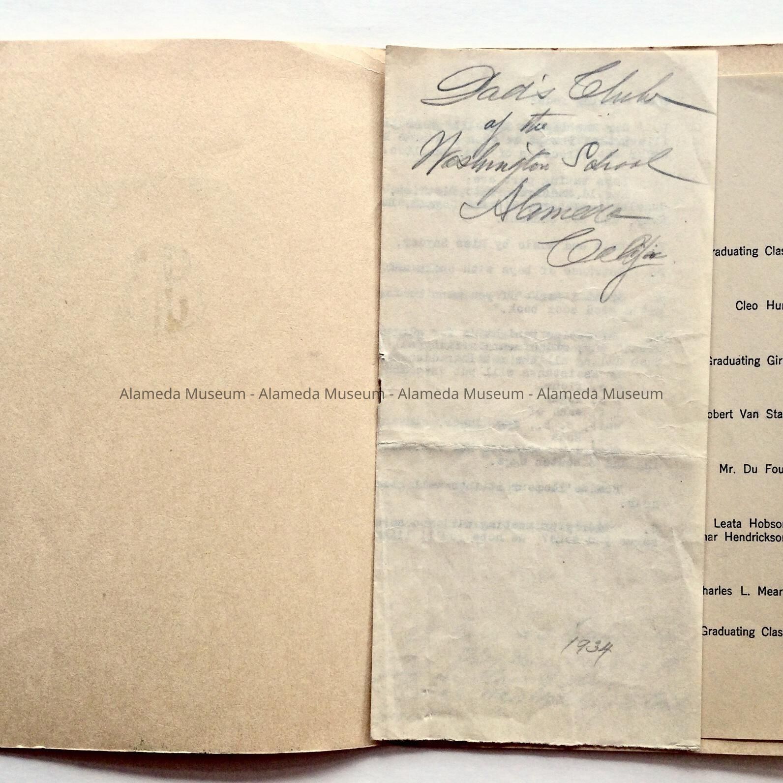 Program, Graduation Exercises, Washington School, 1913. This particular copy was owned by George Rose (member of the graduating class) and contains the autographs of his classmates.