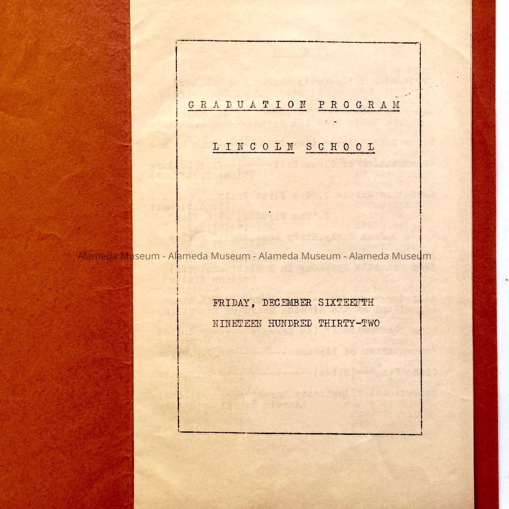 Program Lincoln School Graduation, December 1932Entry/Object ID