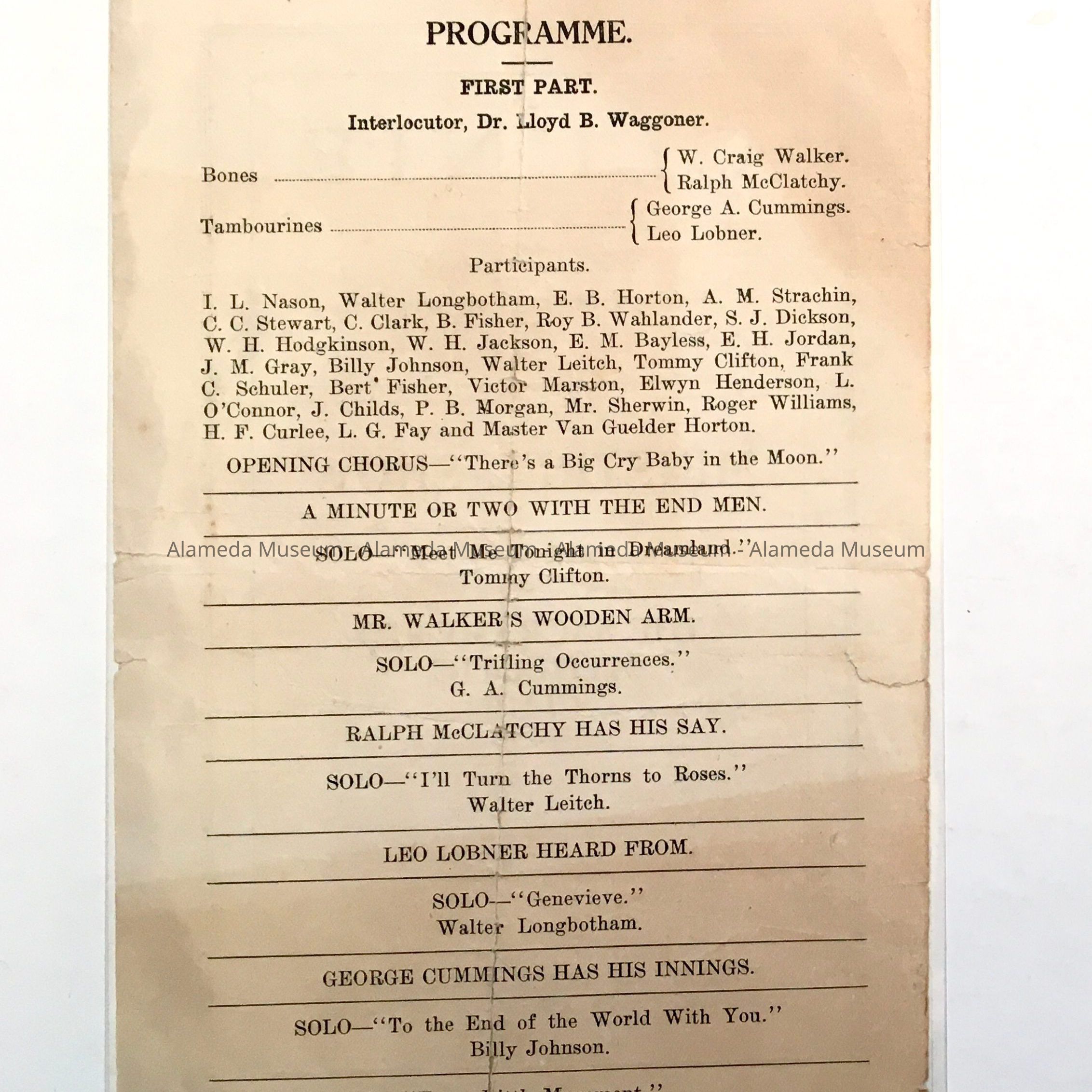 Program 'Minstrel Show', presented by Sacramento Athletic Club, 1911Entry/Object ID