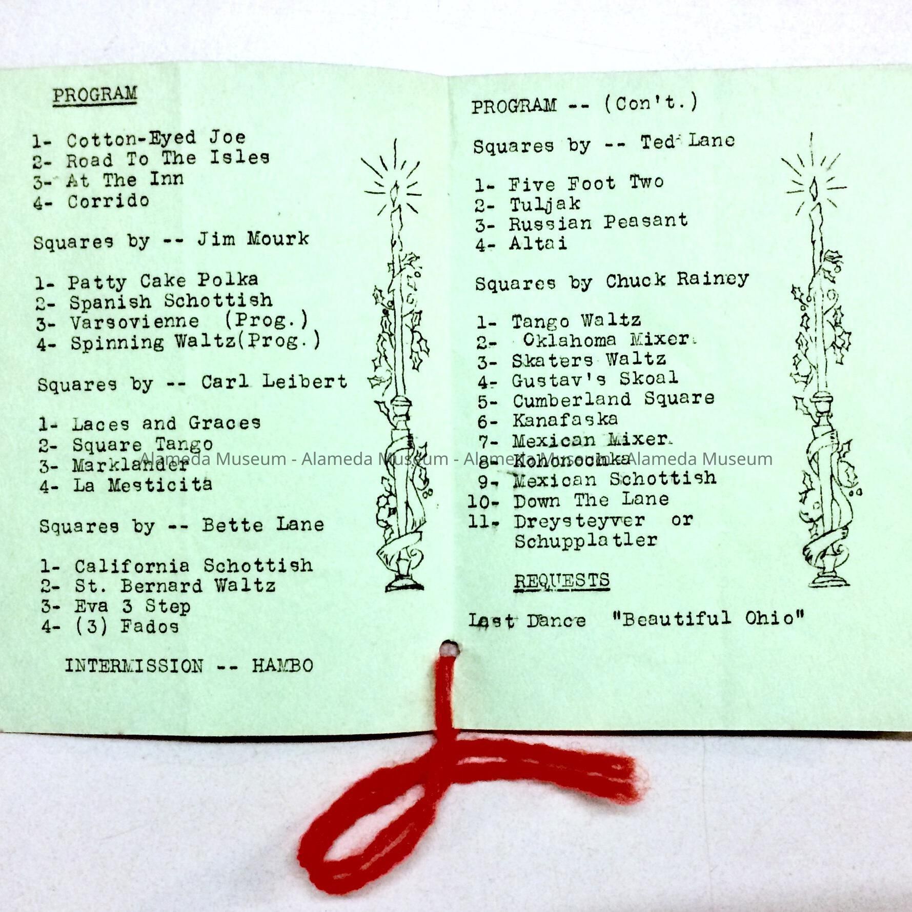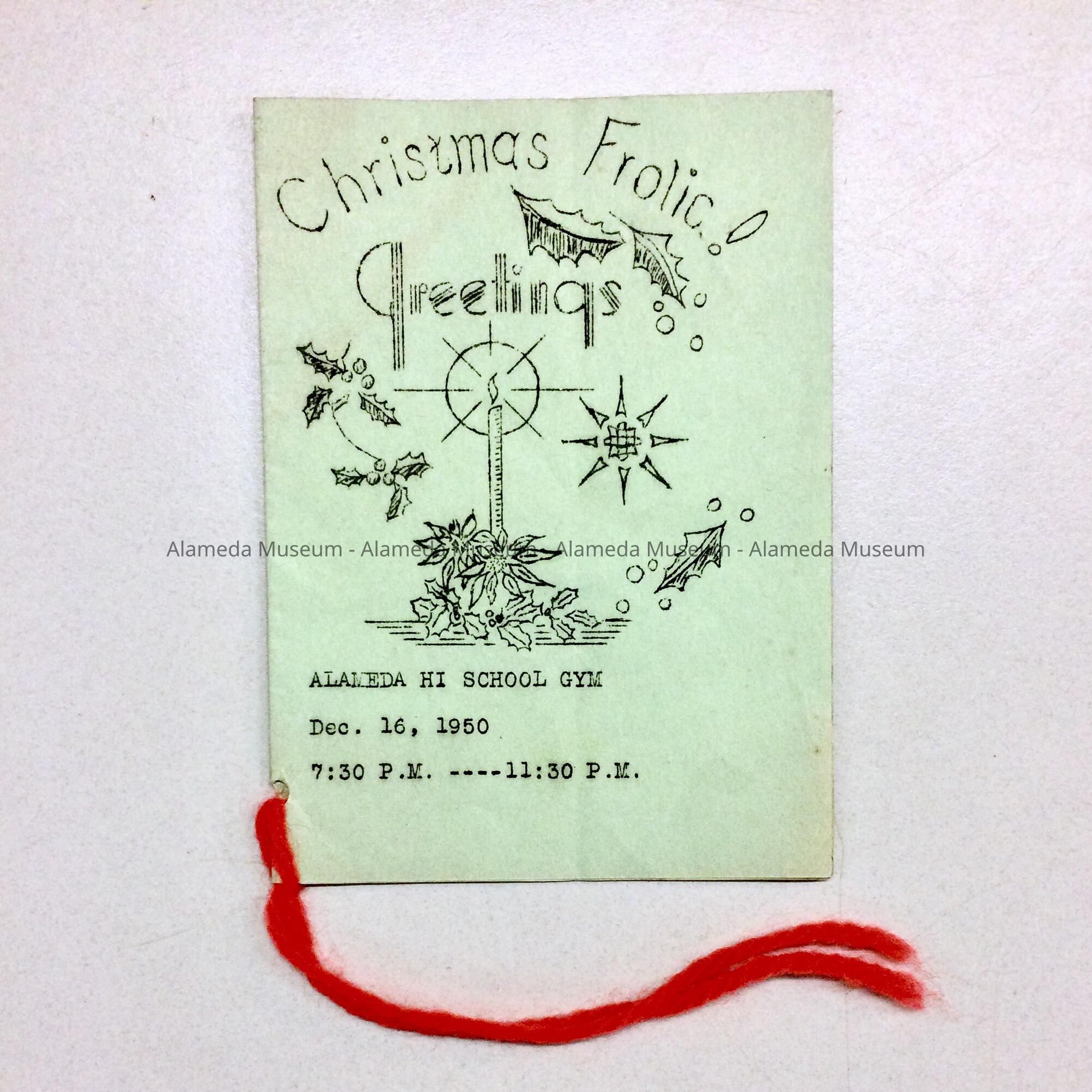HISTORY OF OBJECT: A PROGRAM OF DANCE SELECTIONS AT A CHRISTMAS FROLIC IN THE ALAMEDA HIGH SCHOOL GYM, DECEMBER 16, 1950.