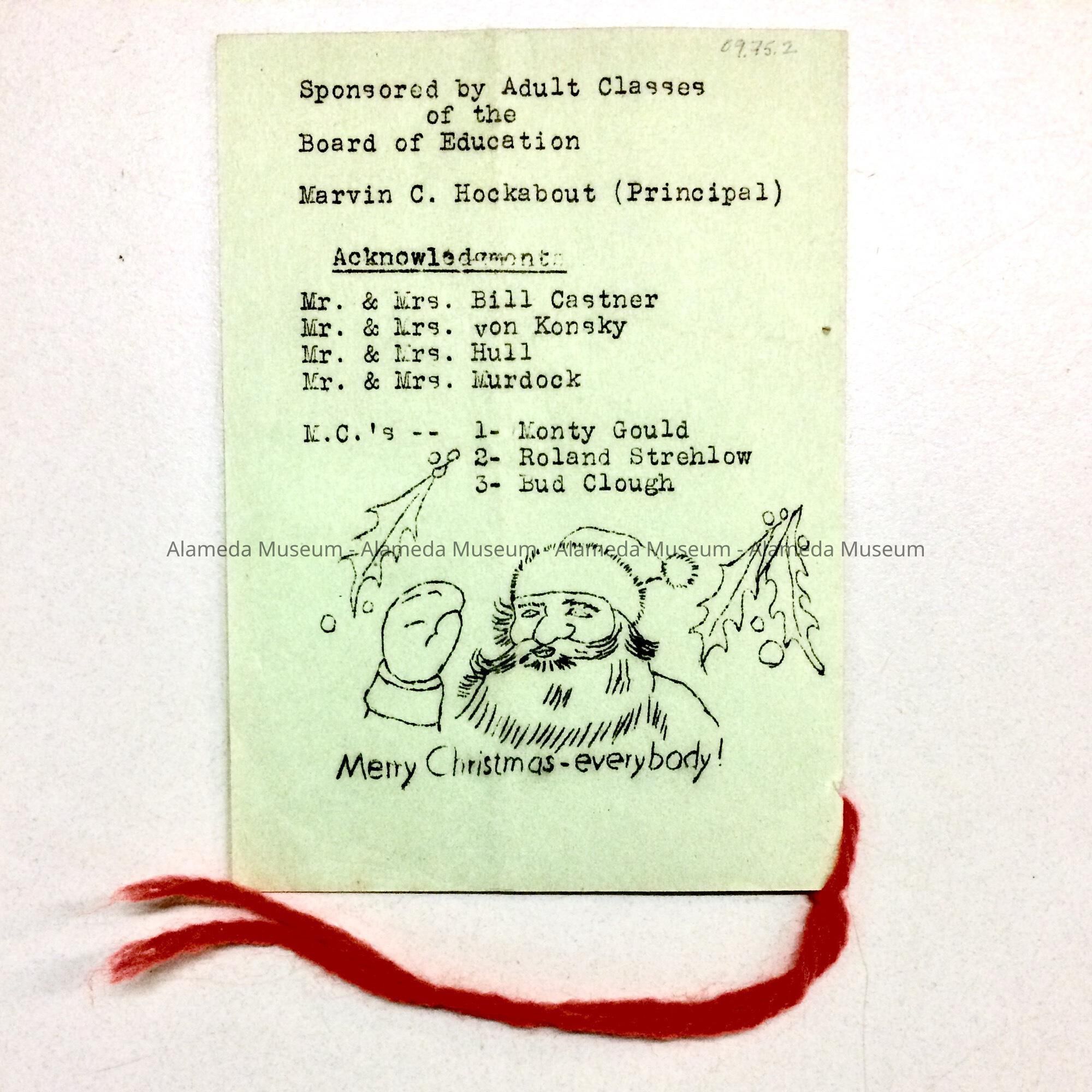 Program of a Christmas dance at Alameda High school, 1950Entry/Object ID