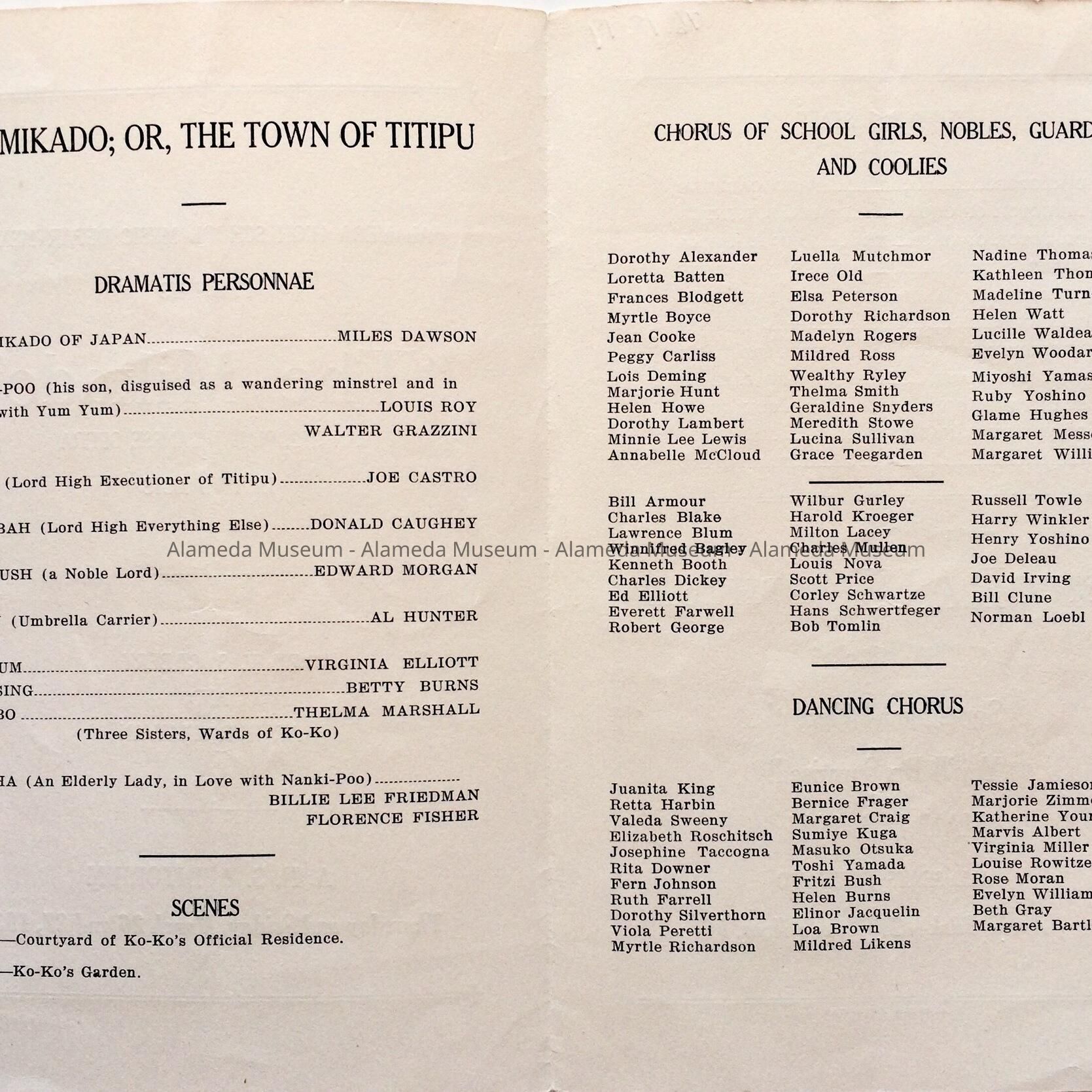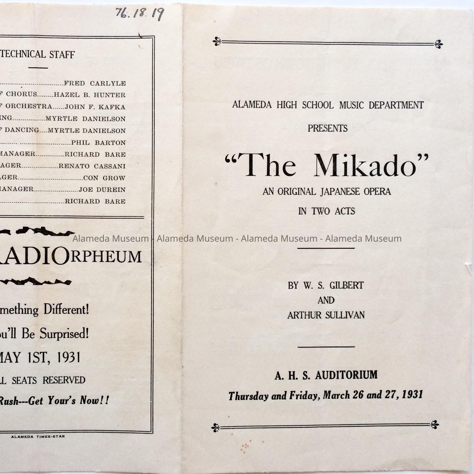 "THE MIKADO", AN ORIGINAL JAPANESE OPERA, IN TWO ACTS. ALAMEDA HIGH SCHOOL AUDITORIUM, MAR 26, 27, 1931.