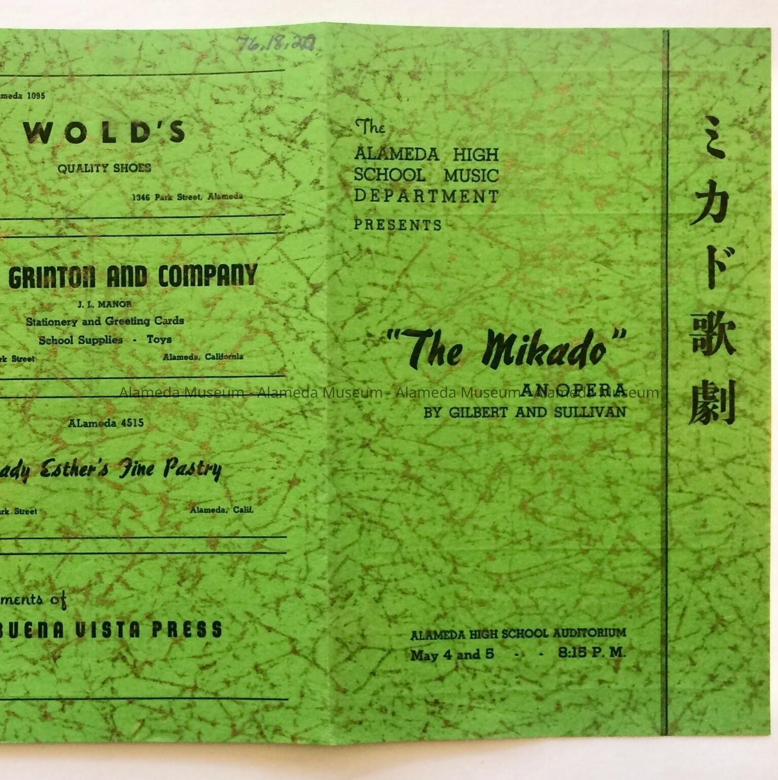 THE ALAMEDA HIGH SCHOOL MUSIC DEPARTMENT PRESENTS, THE MIKADO", ALAMEDA HIGH SCHOOL AUDITORIUM, MAY 4 & 5, ?