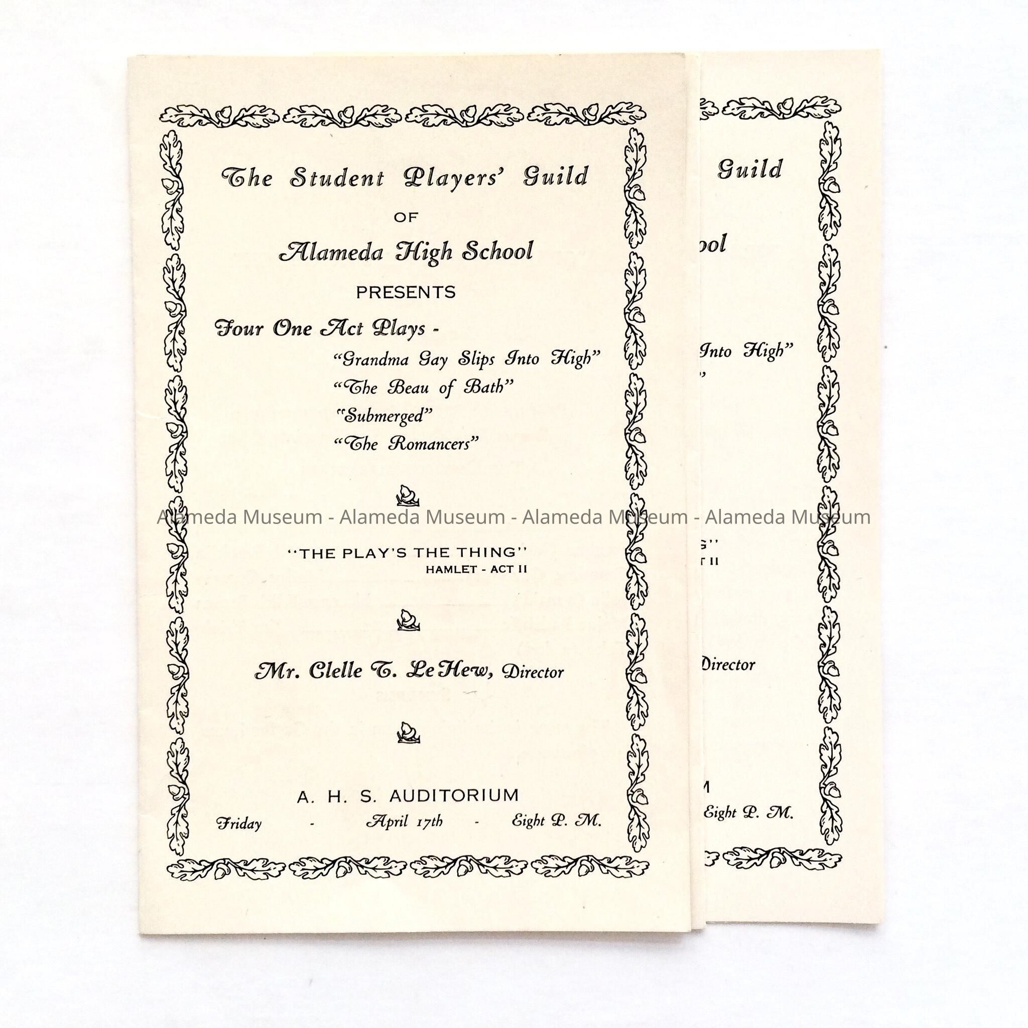 HISTORY OF OBJECT: THE STUDENT PLAYERS GUILD OF ALAMEDA HIGH SCHOOL PRESENTS FOUR ONE ACT PLAYS. MR. CLELLE T. LE HEW, DIRECTOR.