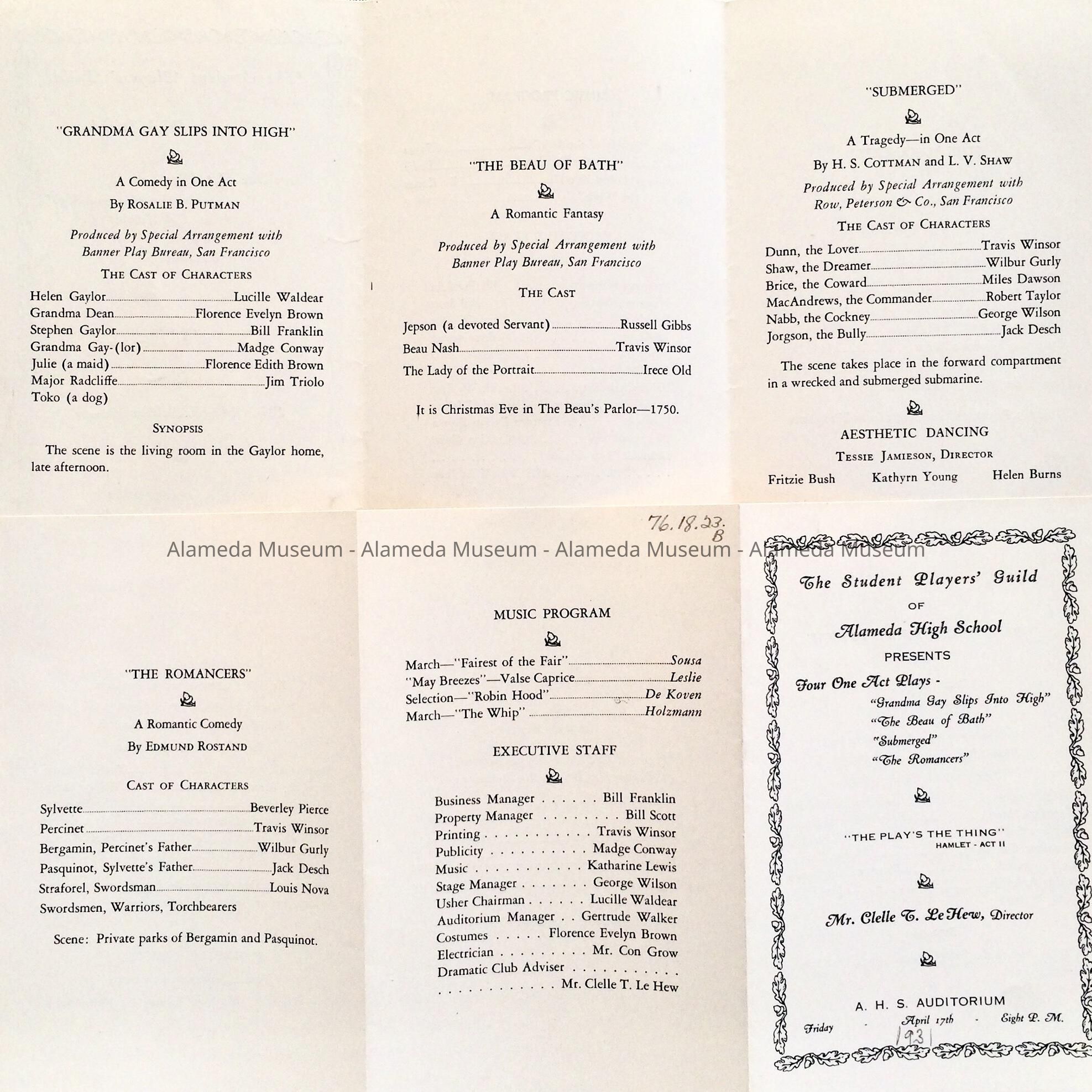 Program performance, Student Players' Guild of Alameda High School, 1931Entry/Object ID