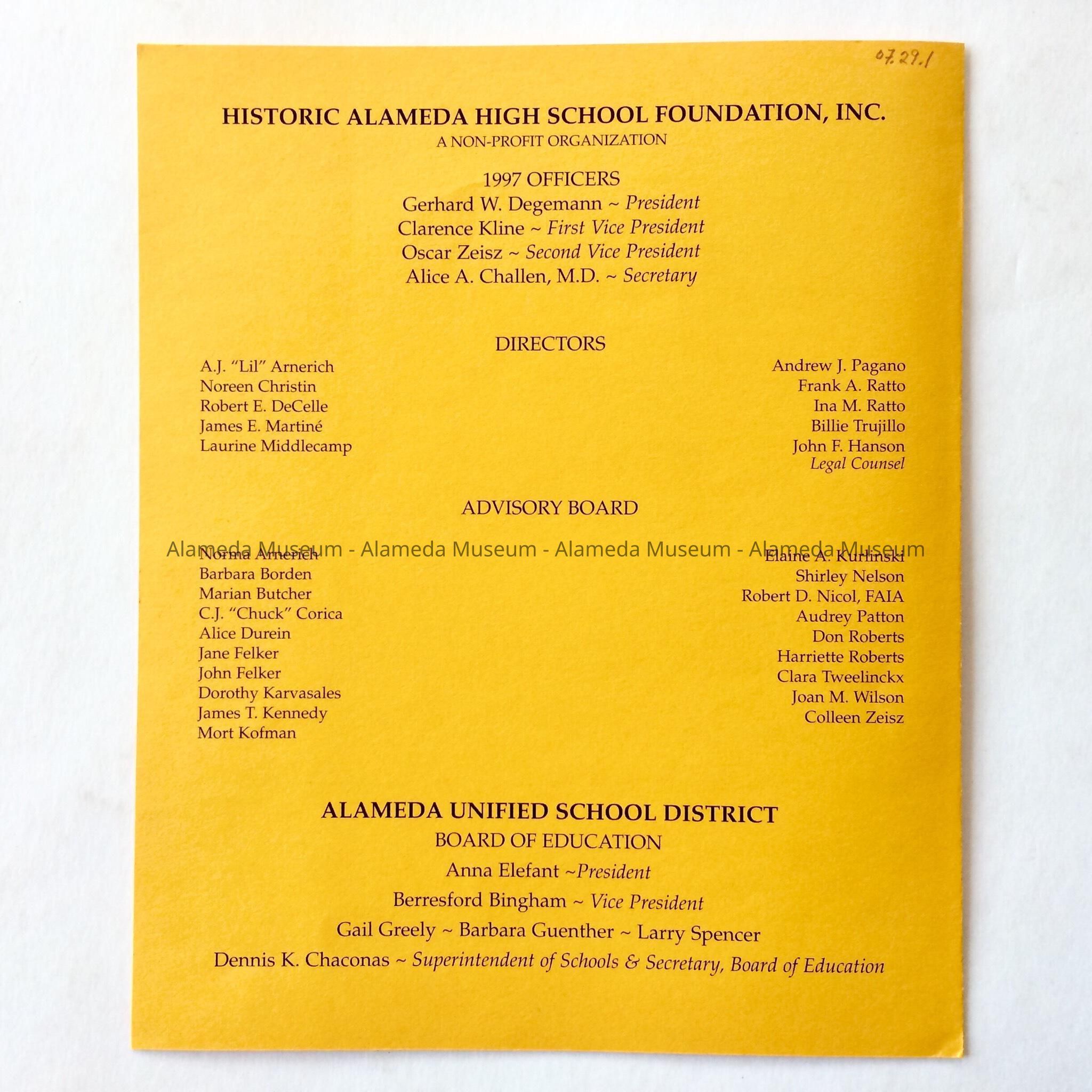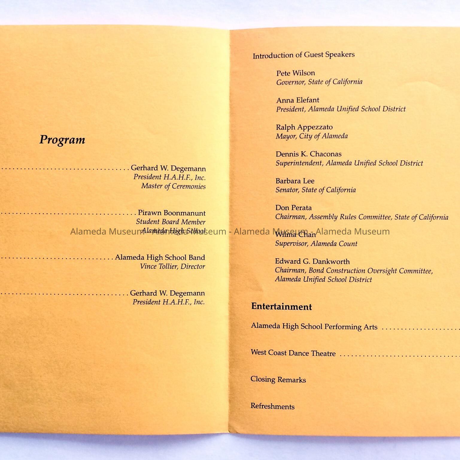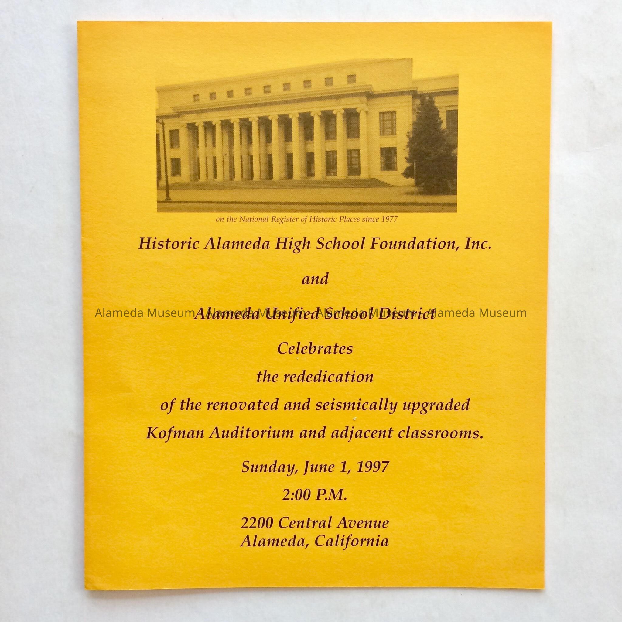 Program rededication Kofman Auditorium, Alameda High School, 1997Entry/Object ID