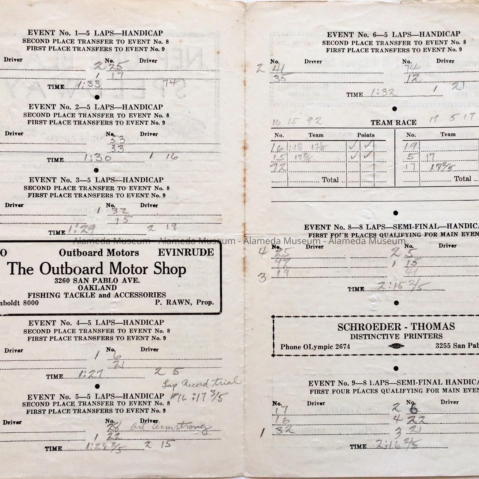 History of Object: Program style scorecard from Neptune Beach Speedway for
