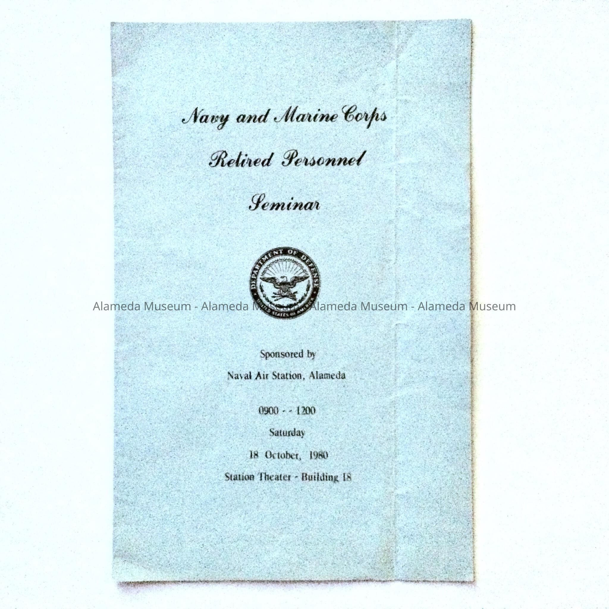 History of Object: Program of topics of importance to retired personnel, sponsored by the Naval Air Station, Alameda, on 18 October, 1980.