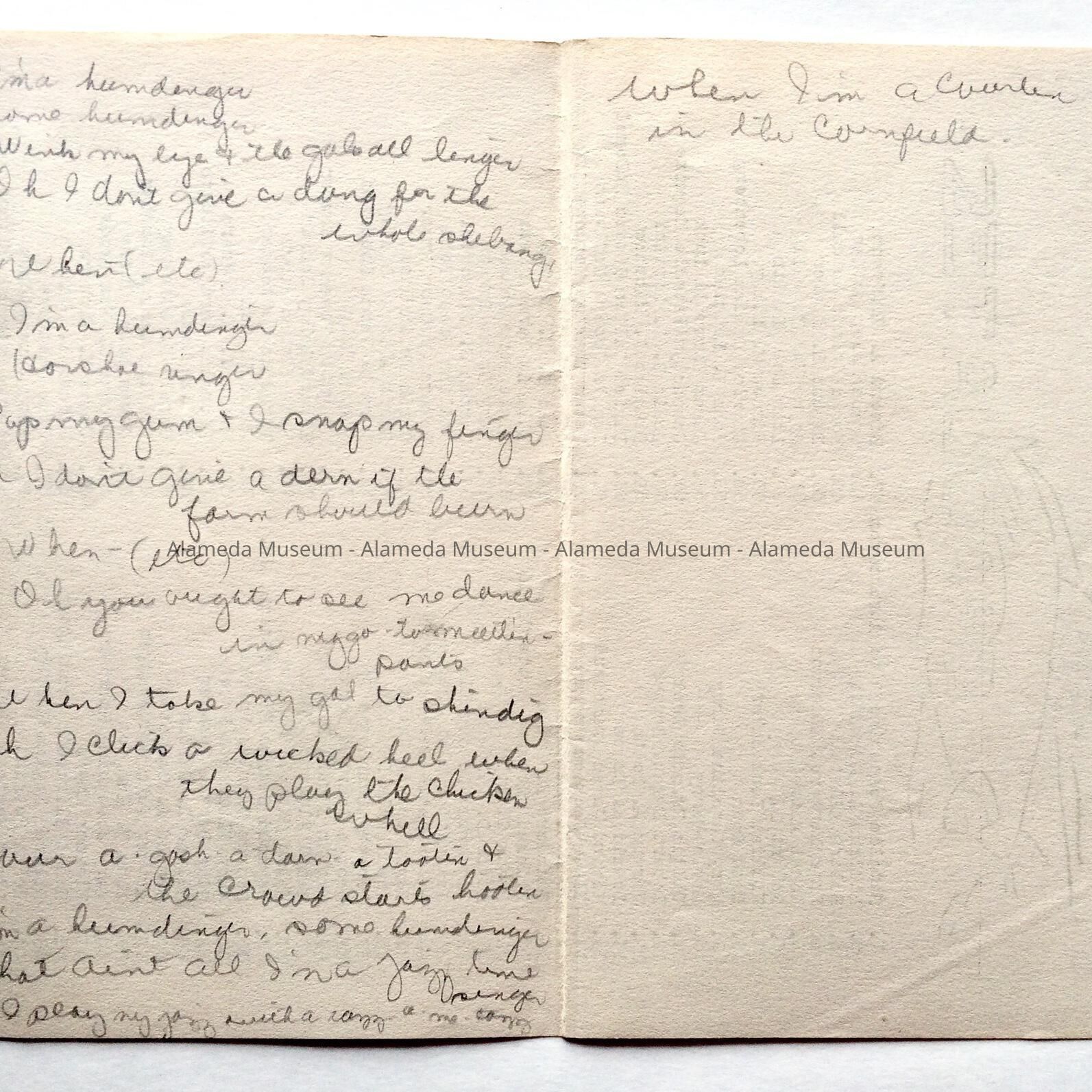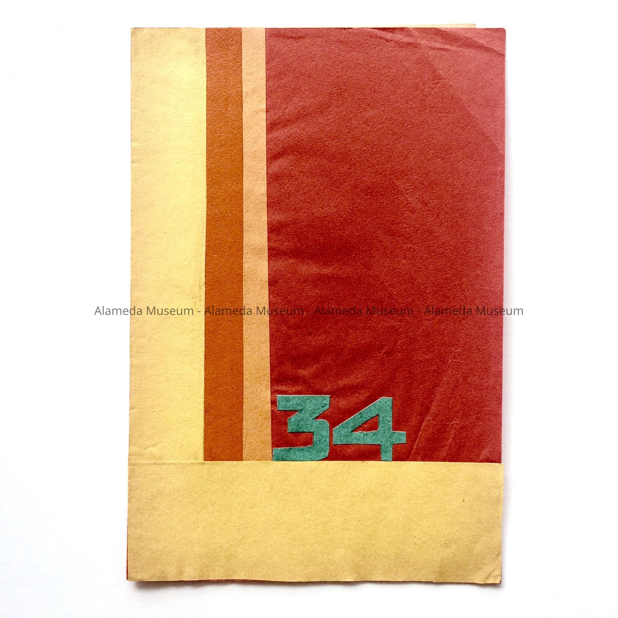 Two-page program with cover design made out of colored paper in orange, red, green, and yellow colors. Contains two mimeographed pages.