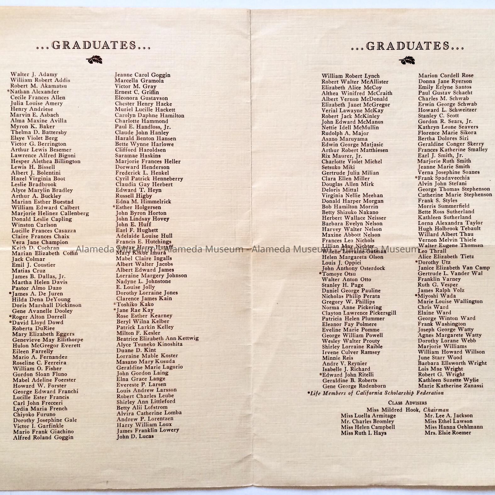 Programs Alameda High School Commencement, 1936Entry/Object ID