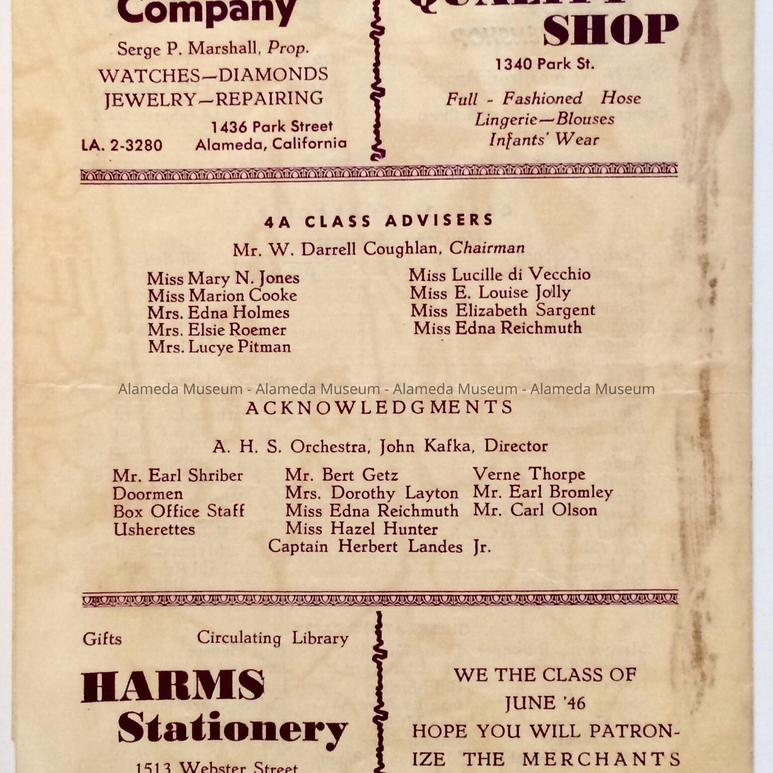 Programs Alameda High School Commencement and Play, 1946Entry/Object ID