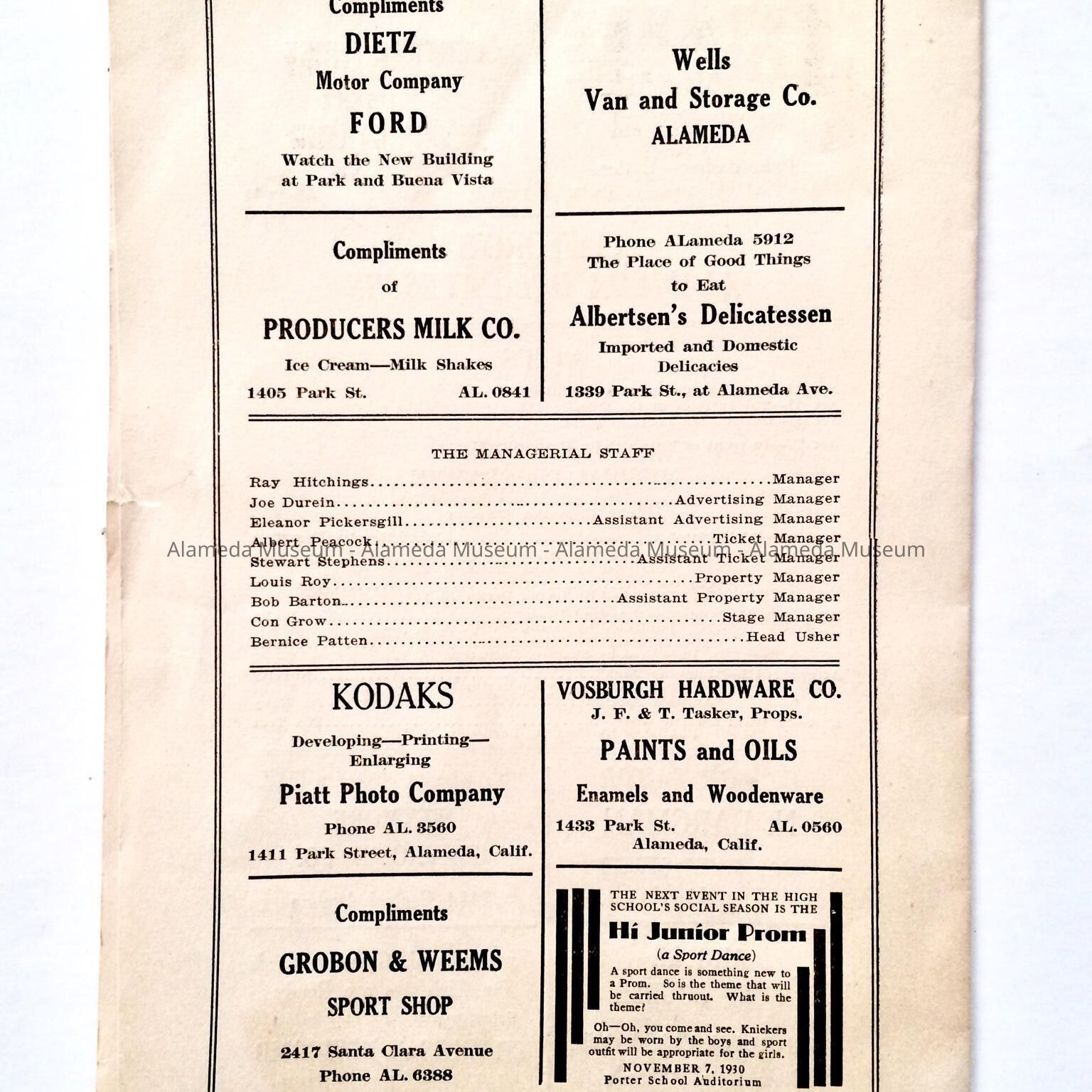 Programs for Alameda High School Class of June 1931 play, 1930Entry/Object ID