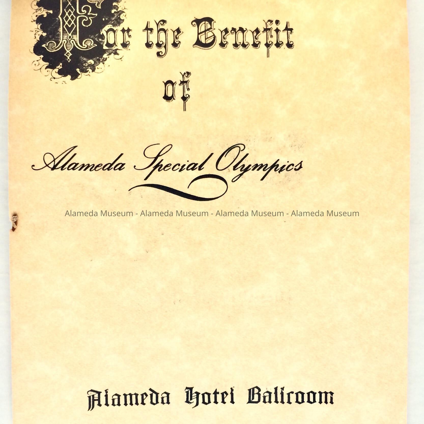 TWO COPIES OF THE PROGRAM FOR THE ALAMEDA VICTORIAN PRESERVATION SOCIETY CHARITY BALL, WHICH WAS HELD ON SATURDAY, NOVEMBER 5, 1983. THE BALL WAS GIVEN TO SUPPORT ALAMEDA'S SPECIAL OLYMPICS, AND OCCURRED IN THE ALAMEDA HOTEL. THE LATE ALICE AND JOE DUREIN ATTENDED THE BALL.