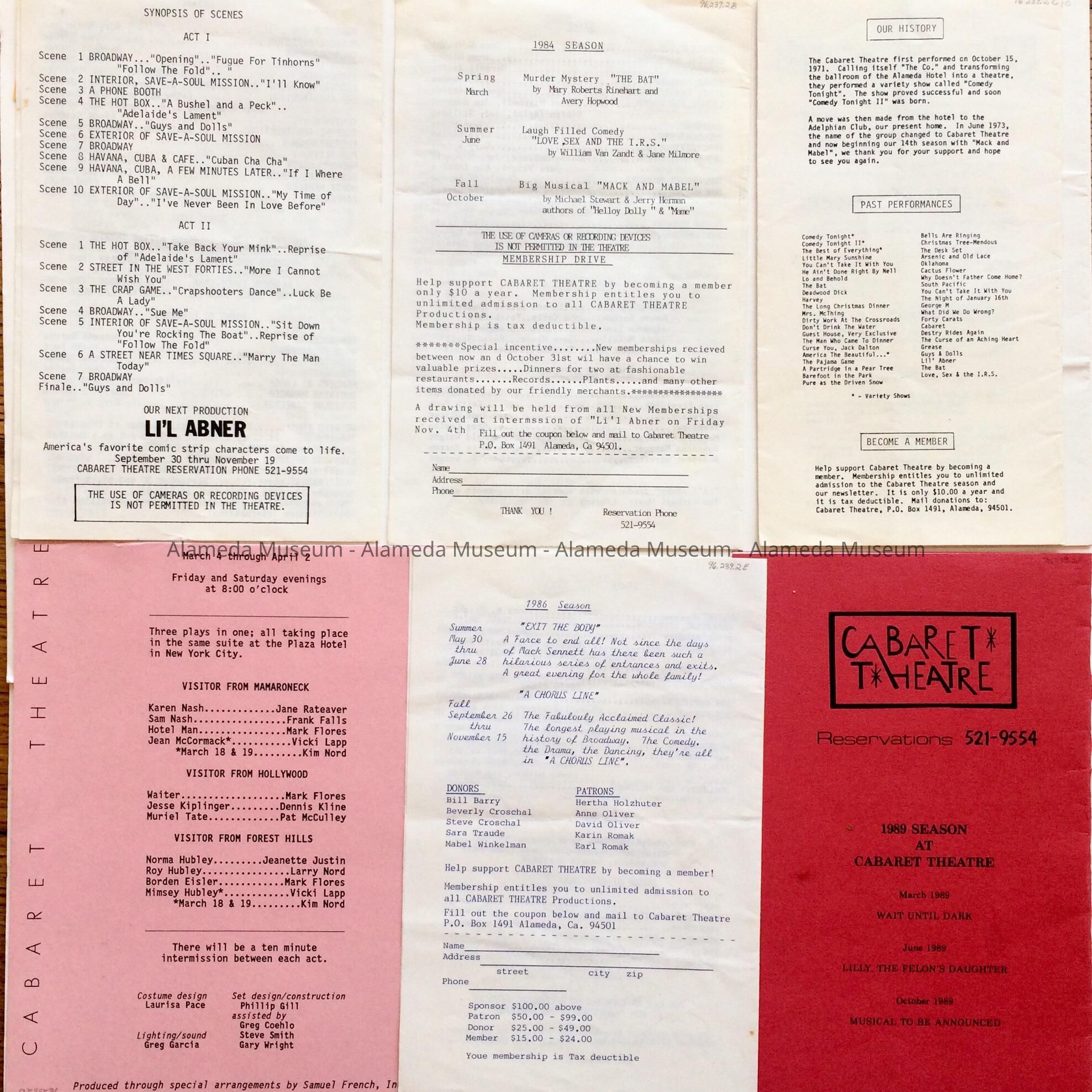 Programs for Cabaret Theatre performances, 1983-1988Entry/Object ID