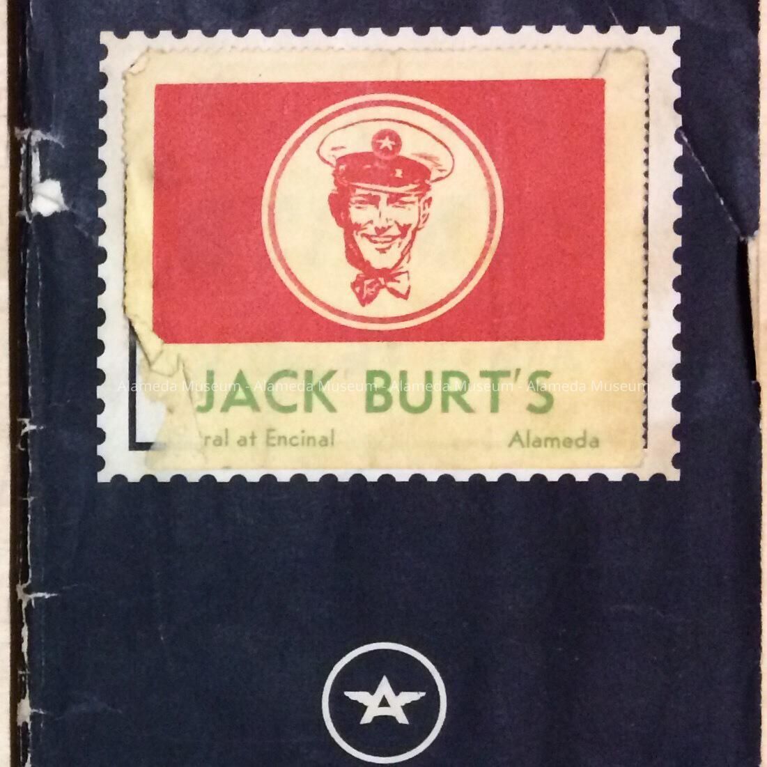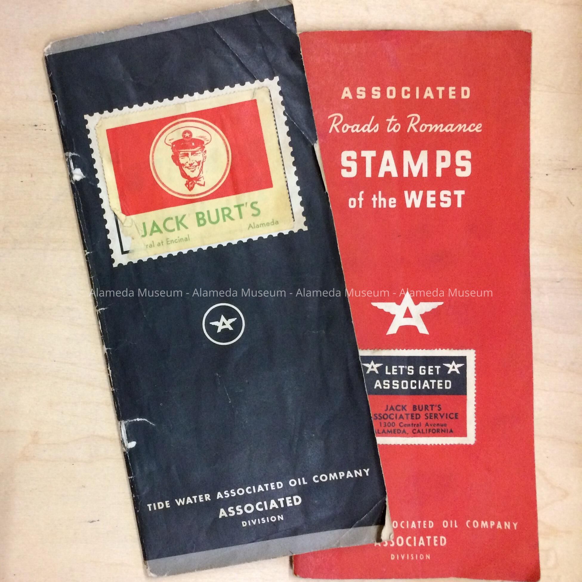 Description: A soft cover booklet with the caption: “Jack Burts, 1300 Central Avenue at Encinal Avenue, Alameda". The black cover features a Tidewater-Associated Oil Company emblem.