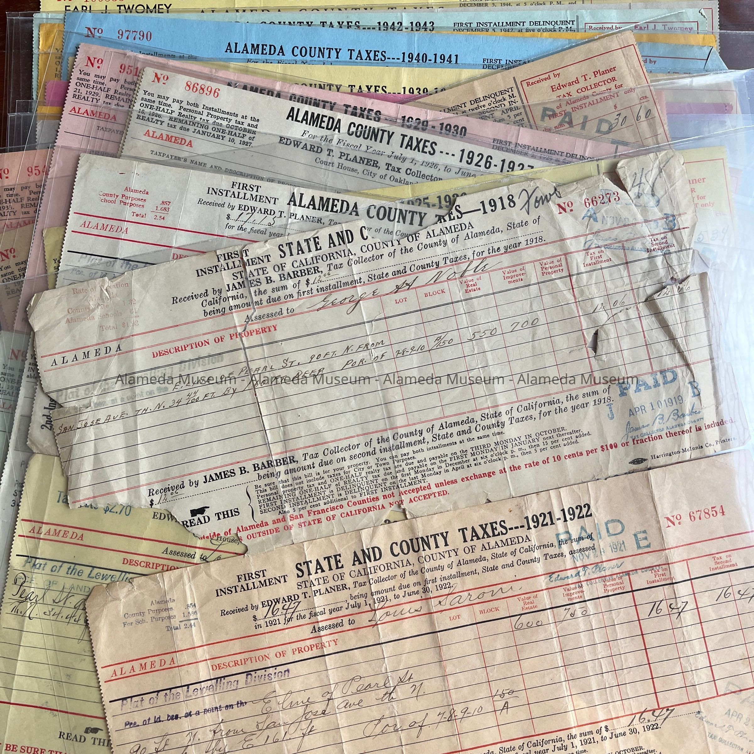 Property tax receipts for 1210 Pearl Street, 1918-1944Entry/Object ID