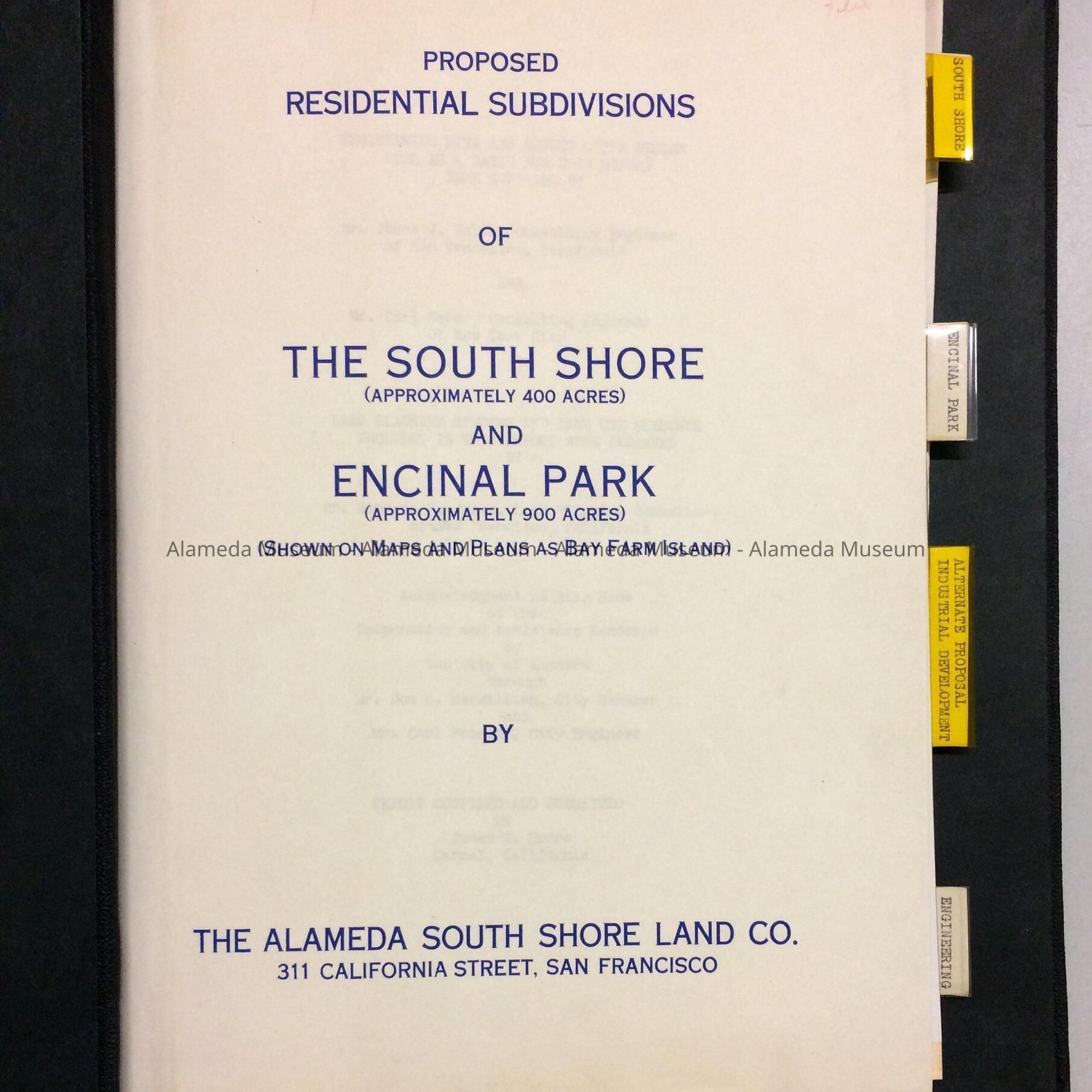 PROPOSED RESIDENTIAL SUBDIVISION OF SOUTH SHORE AND ENCINAL PARK (BAY FARM ISLAND) BY THE ALAMEDA SOUTH SHORE LAND COMPANY, 311 CALIFORNIA STREET, SAN FRANCISCO, CA.