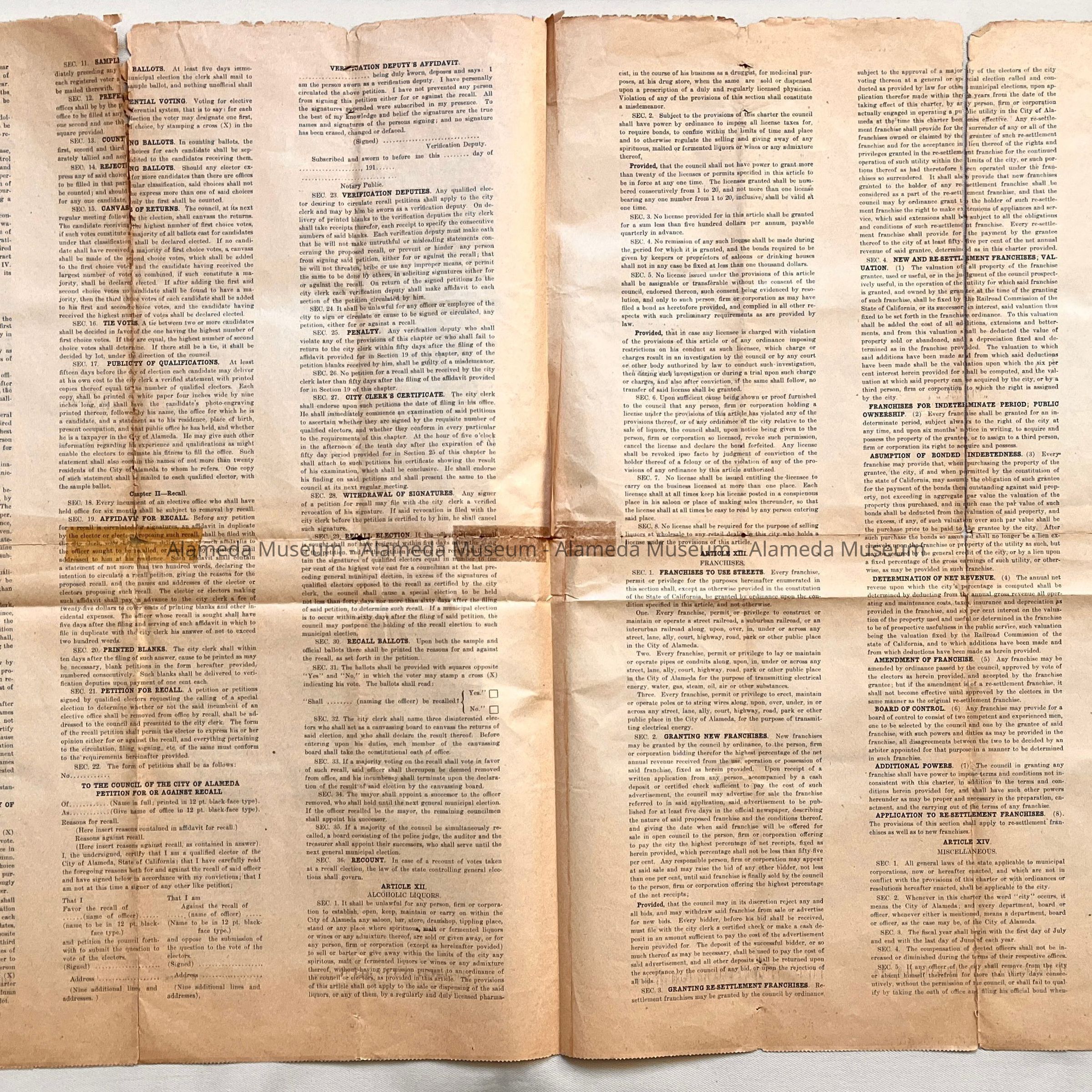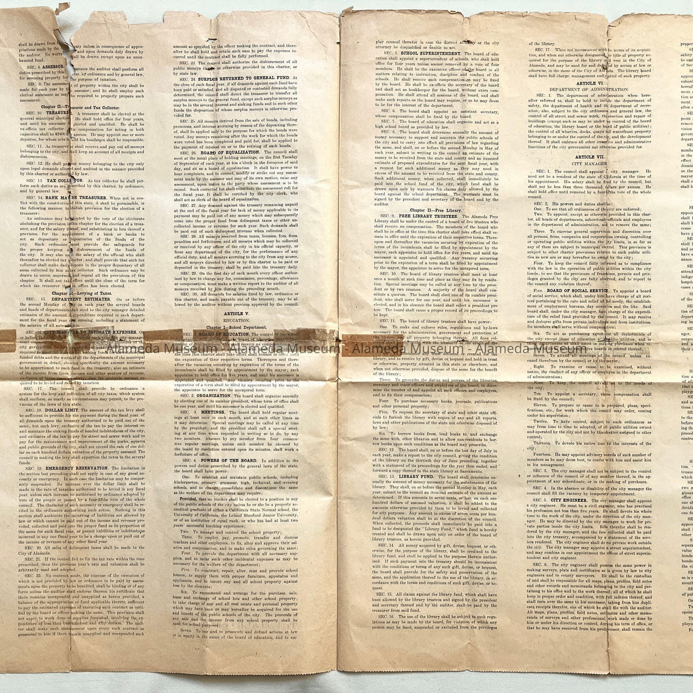 Description: Charter printed on newsprint with bold printed caption "Charter, City of Alameda".