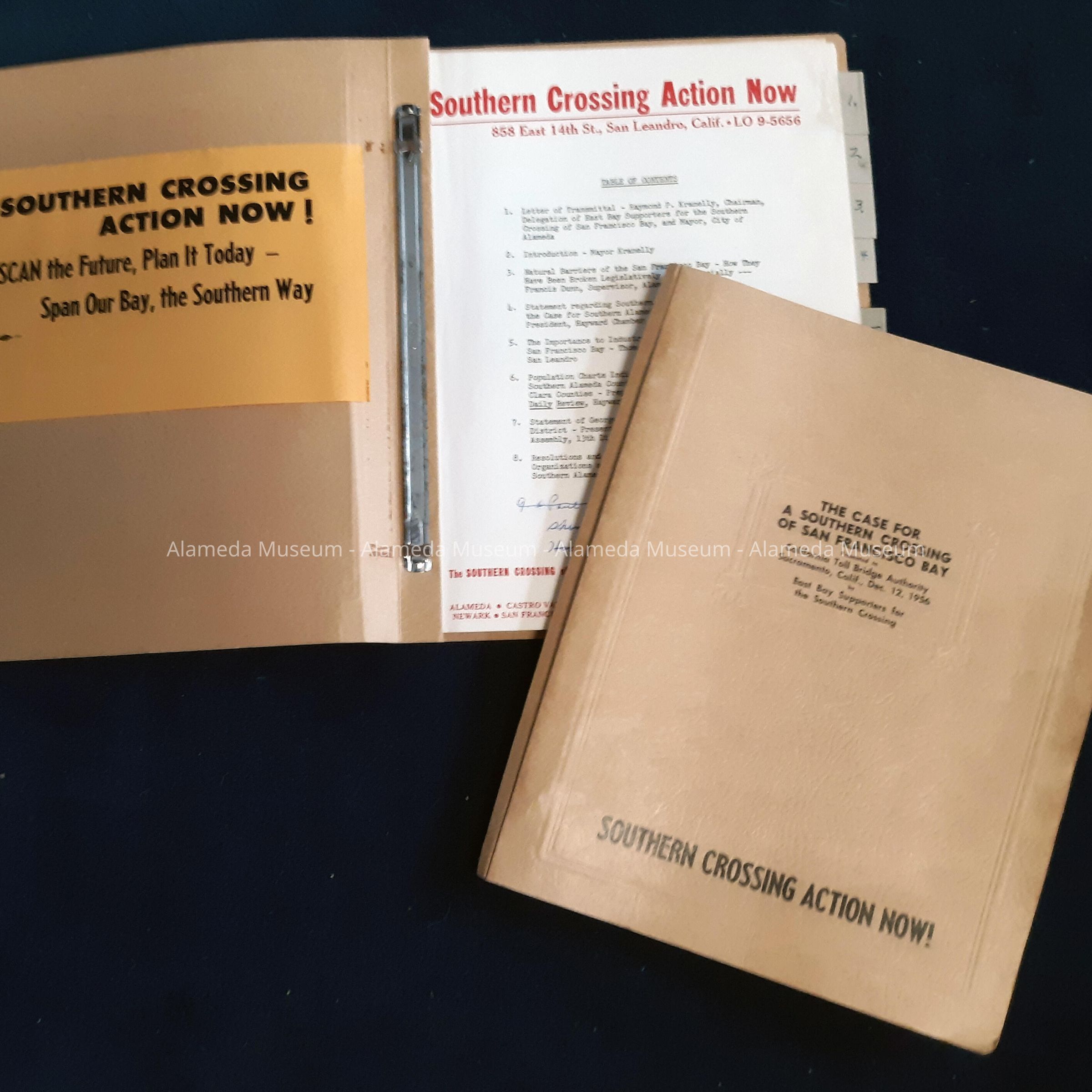 Publication titled: 'The Case for a Southern Crossing of San Francisco Bay, Presented to California Toll Bridge Authority, Sacramento, CA, December 12, 1956, by East Bay Supporters for the Southern Crossing'.
