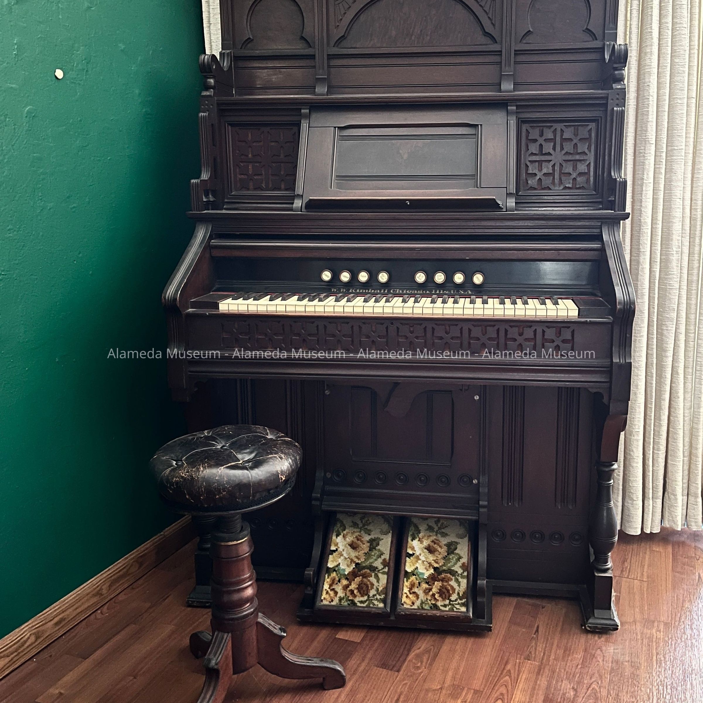The organ and stool were donated by Phyllis and became part of a display opened in 2009, funded and curated by Ron Ucovich.